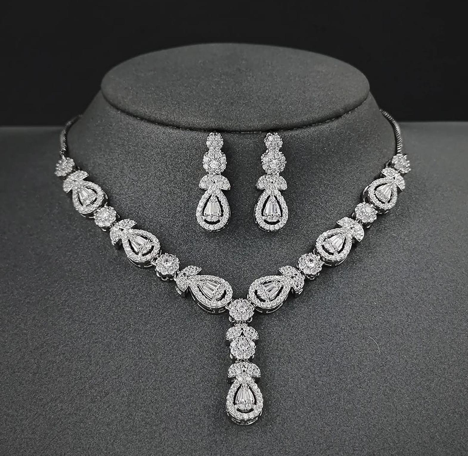 Discover the exquisite beauty of our AAAA Cubic Zirconia Bridal Set, designed to elevate your bridal look with its stunning sparkle and adjustable fit. This elegant set includes a beautifully crafted necklace, matching earrings, and a delicate bracelet, all adorned with high-quality AAAA cubic zirconia stones that reflect light beautifully, mimicking the brilliance of real diamonds.
