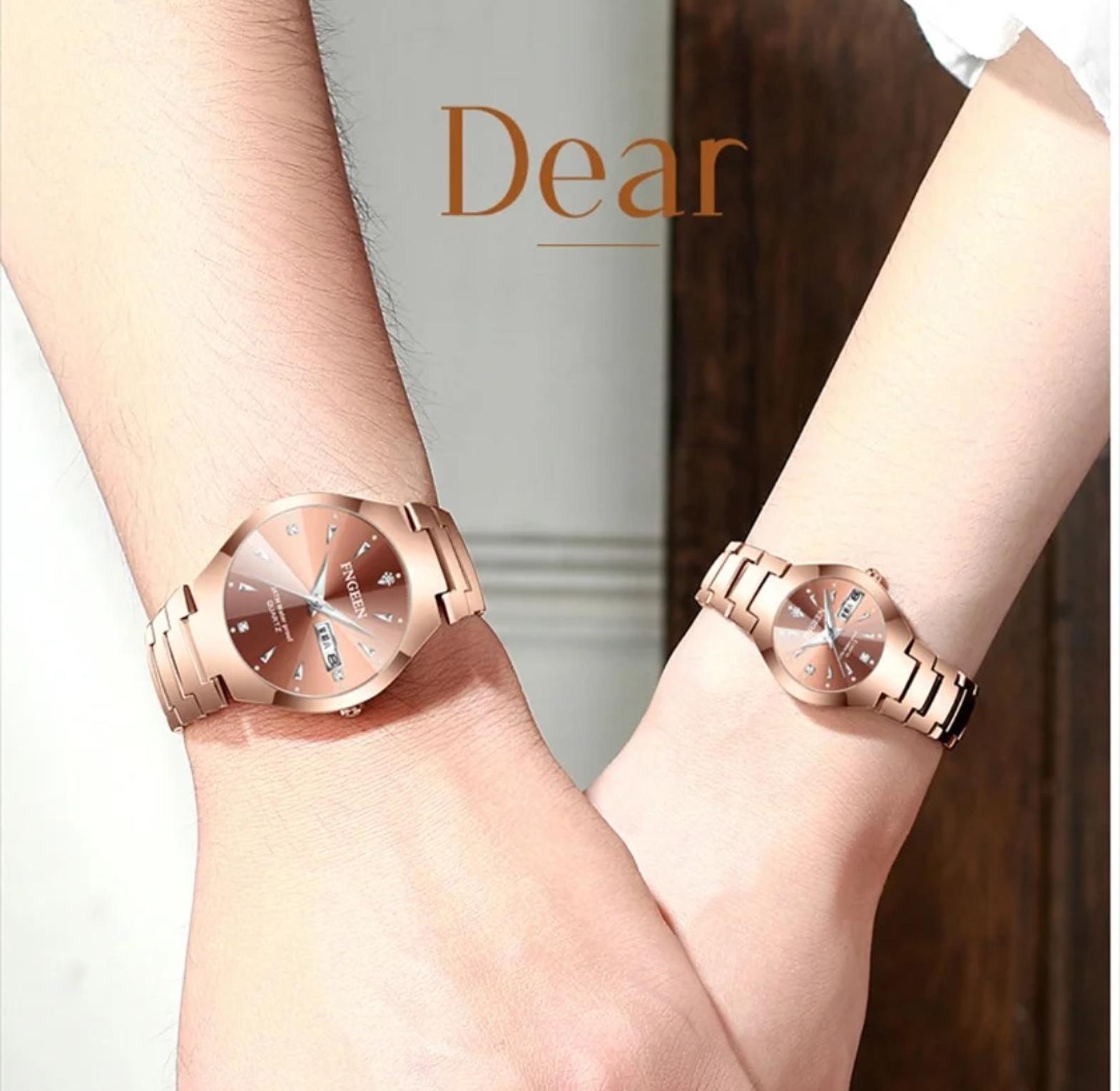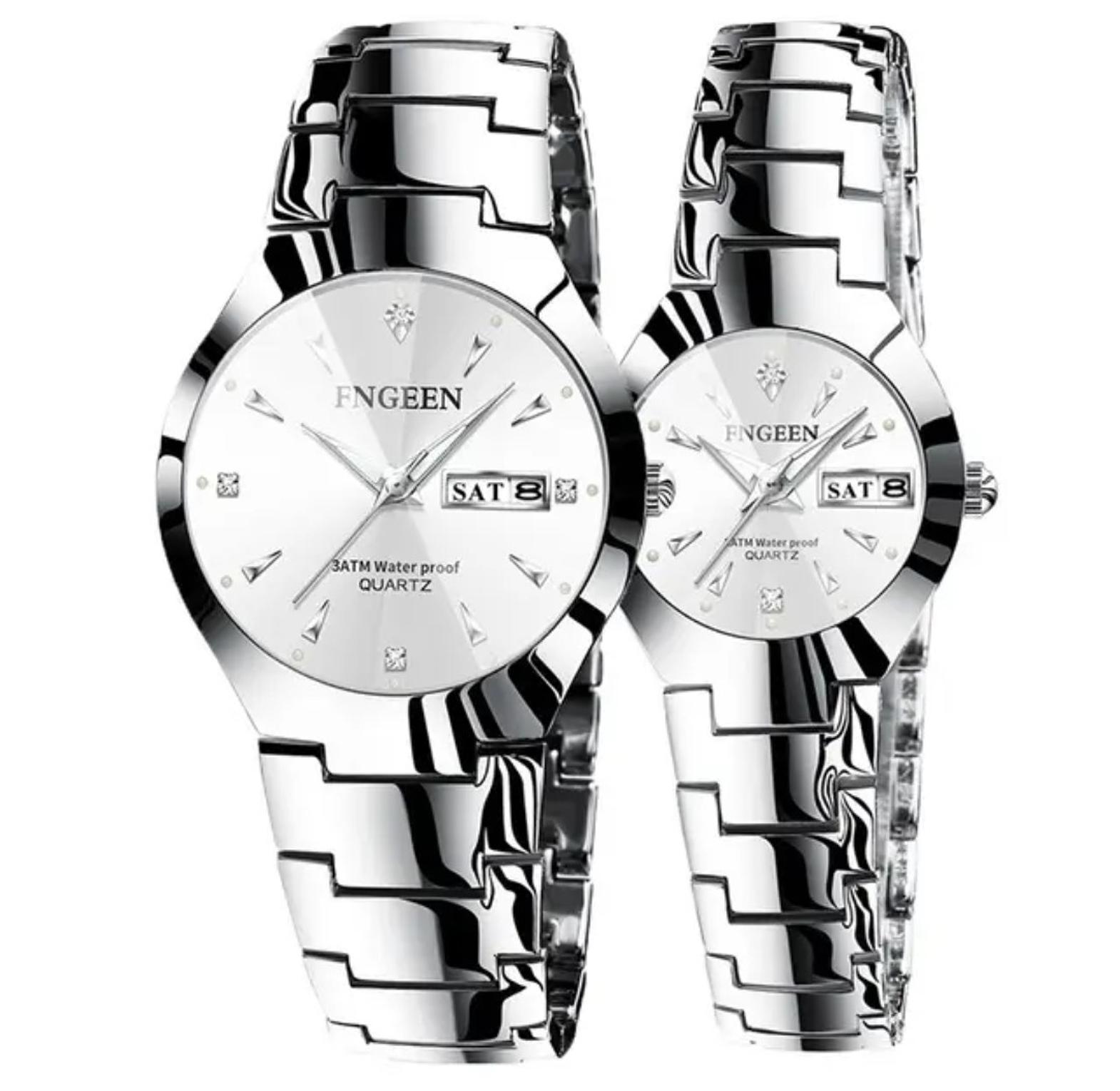 Symbolize your timeless bond with our elegant timepiece Couple Watches set, featuring matching his and hers watches crafted from sleek stainless steel. Designed for sophisticated daily wear, these watches boast reliable water resistance, ensuring both style and durability for every shared moment.