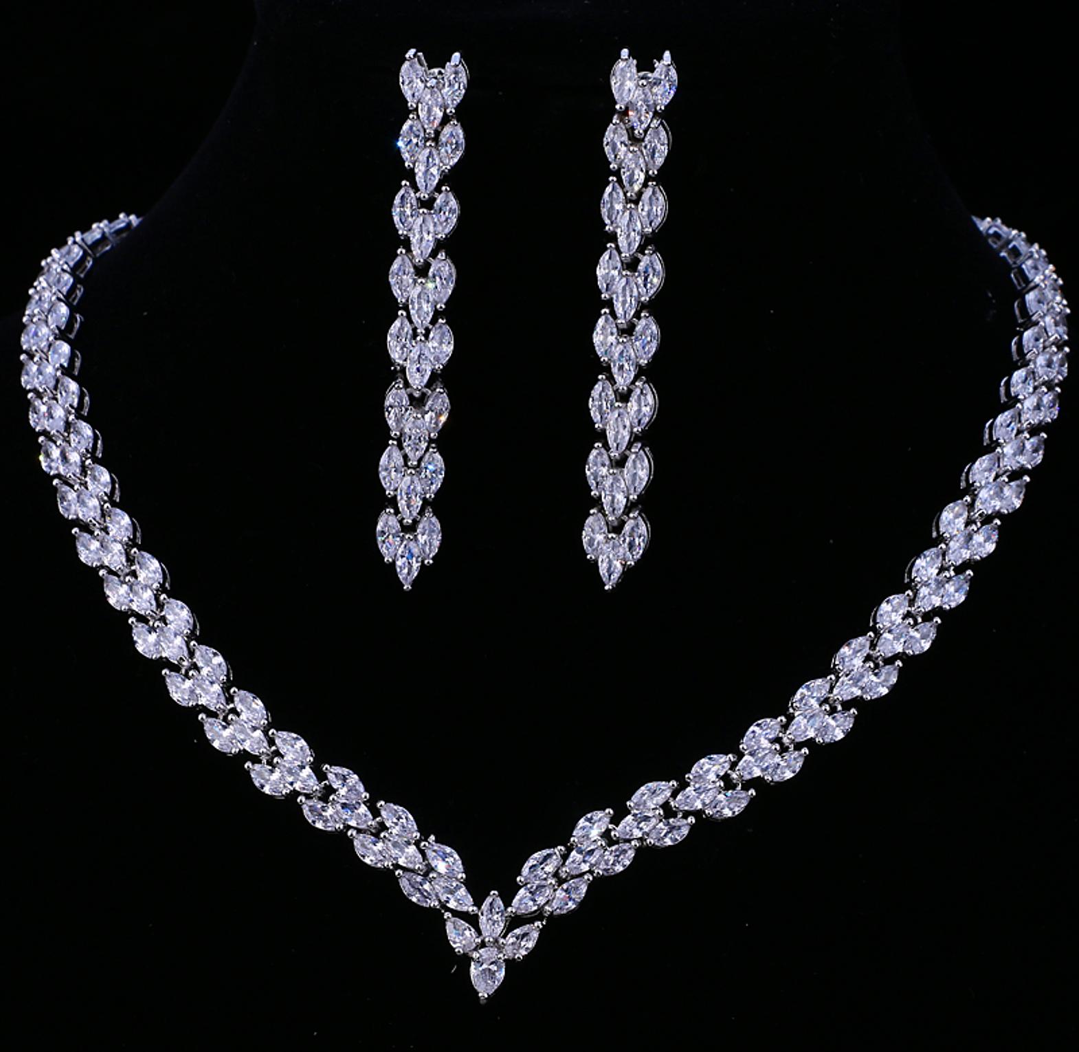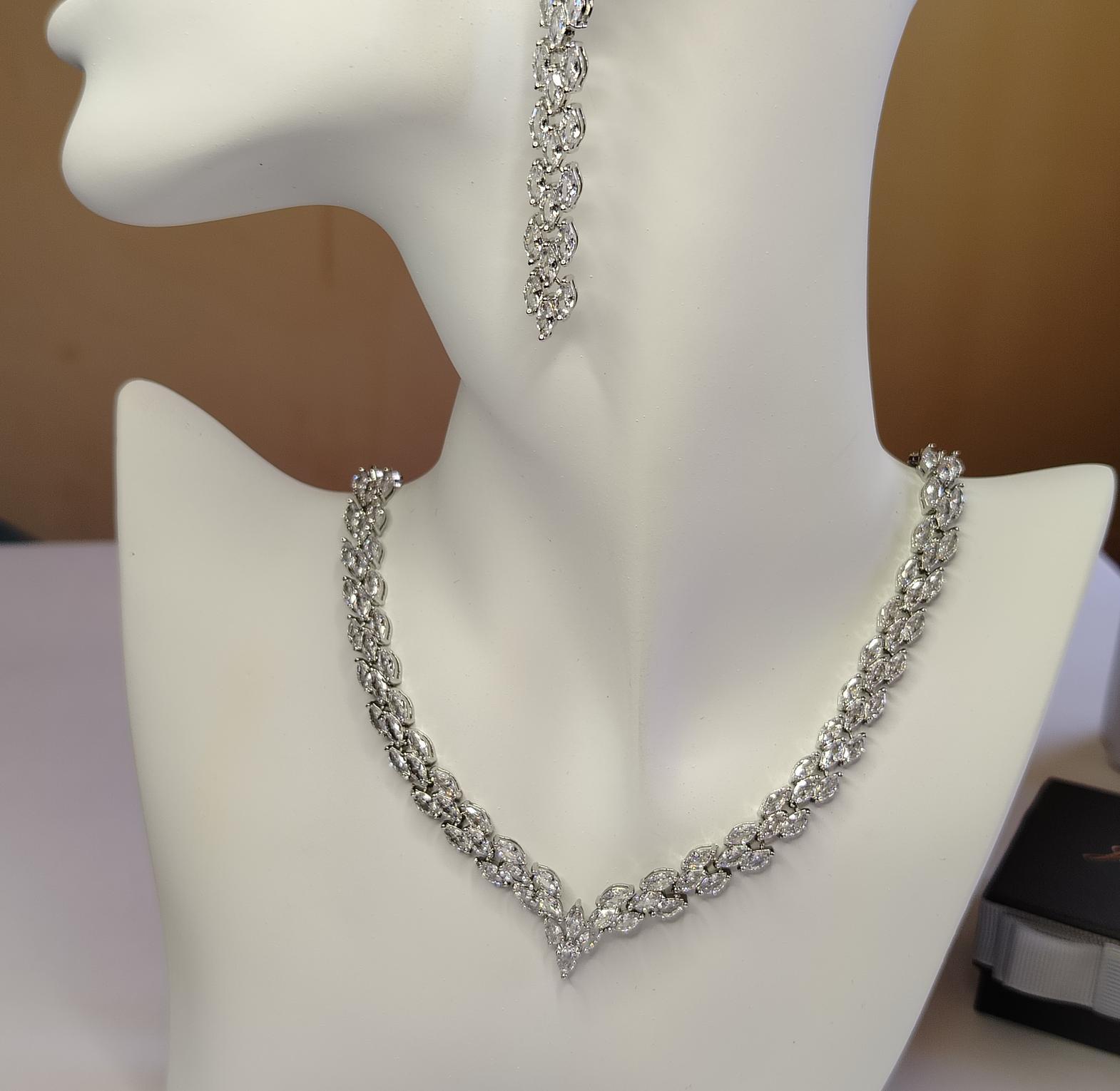 Command attention on your special day with our Bridal Sparkle Set, featuring a high-quality bridal necklace and exquisite long earrings adorned with dazzling Cubic Zirconia. This stunning set is available in radiant white gold plated and classic gold plated variants, ensuring you radiate unforgettable elegance.