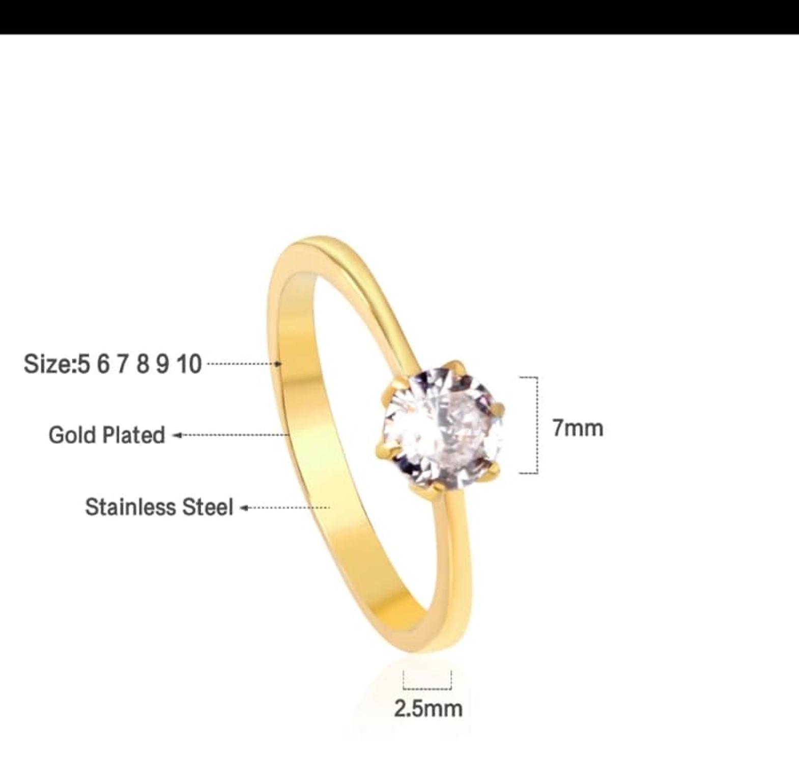 Declare your eternal love with the Promise/Engagement Ring, a captivating blend of modern durability and classic sparkle. This ring features a brilliant Cubic Zirconia stone elegantly set on a luxurious gold-plated stainless steel band, offering lasting beauty and comfortable wear.