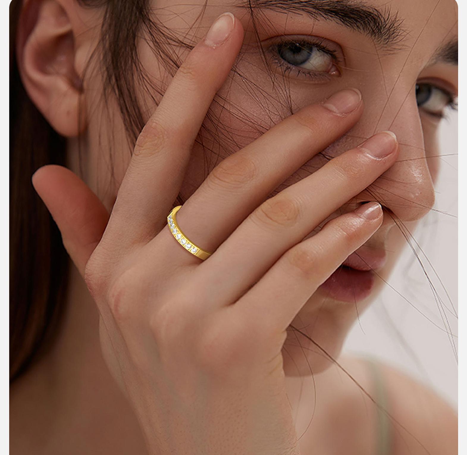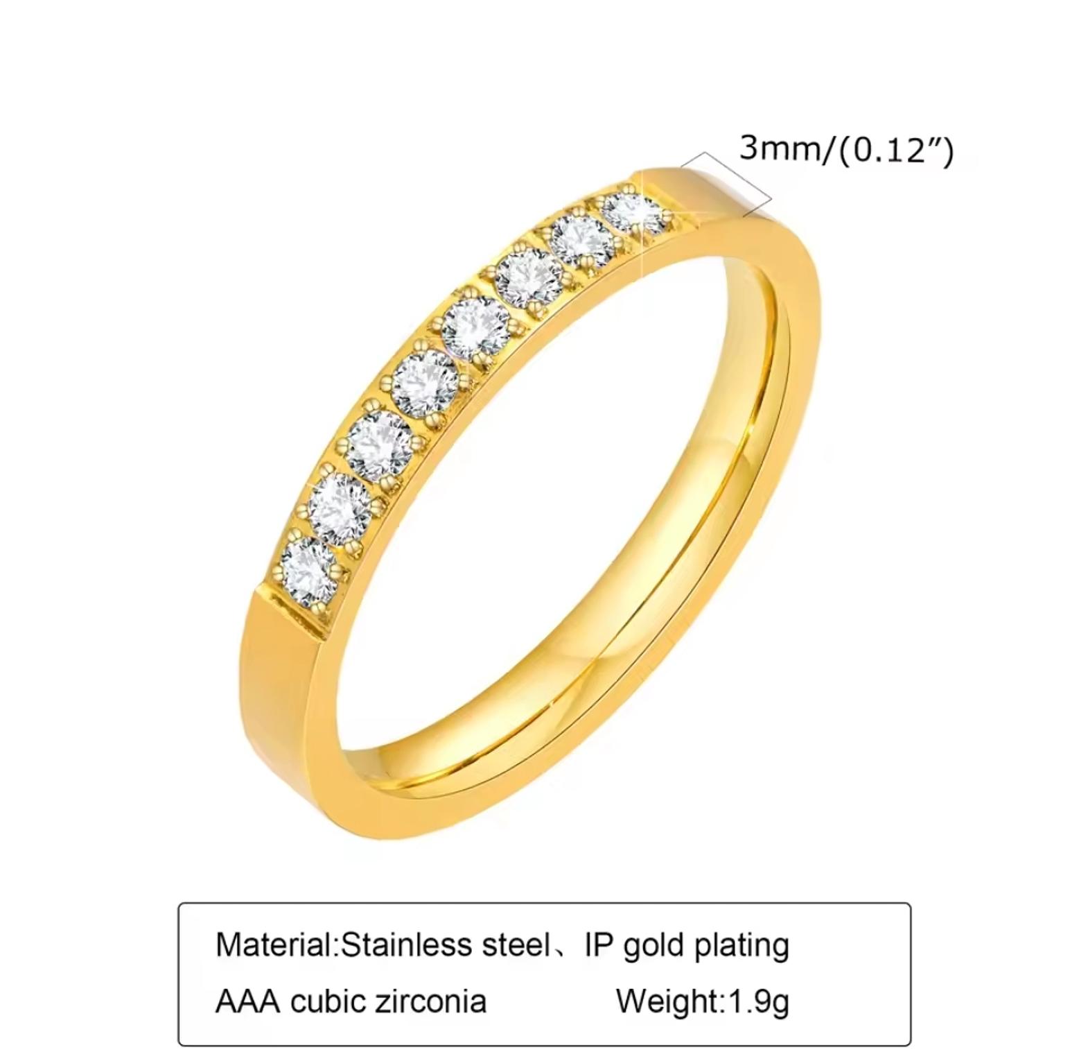 Celebrate your everlasting commitment with this golden Wedding Ring, a radiant band adorned with brilliant Cubic Zirconia, all set on durable gold-plated stainless steel. This ring offers timeless elegance and lasting wear, symbolizing your precious bond.