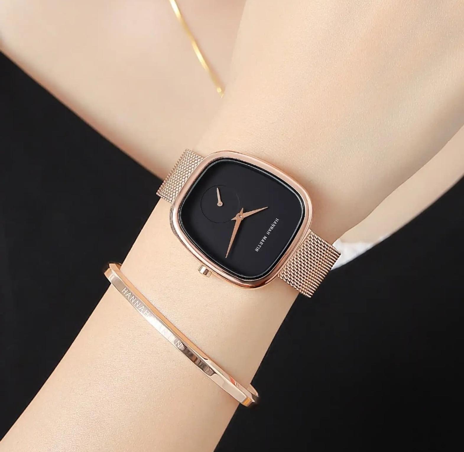 Discover distinctive style with the Hannah Martin Watch, featuring a unique barrel-shaped case and a sleek stainless steel band. Protected by a Hardlex face and boasting 3 Bar water resistance, it's a statement of sophisticated durability for the modern individual.