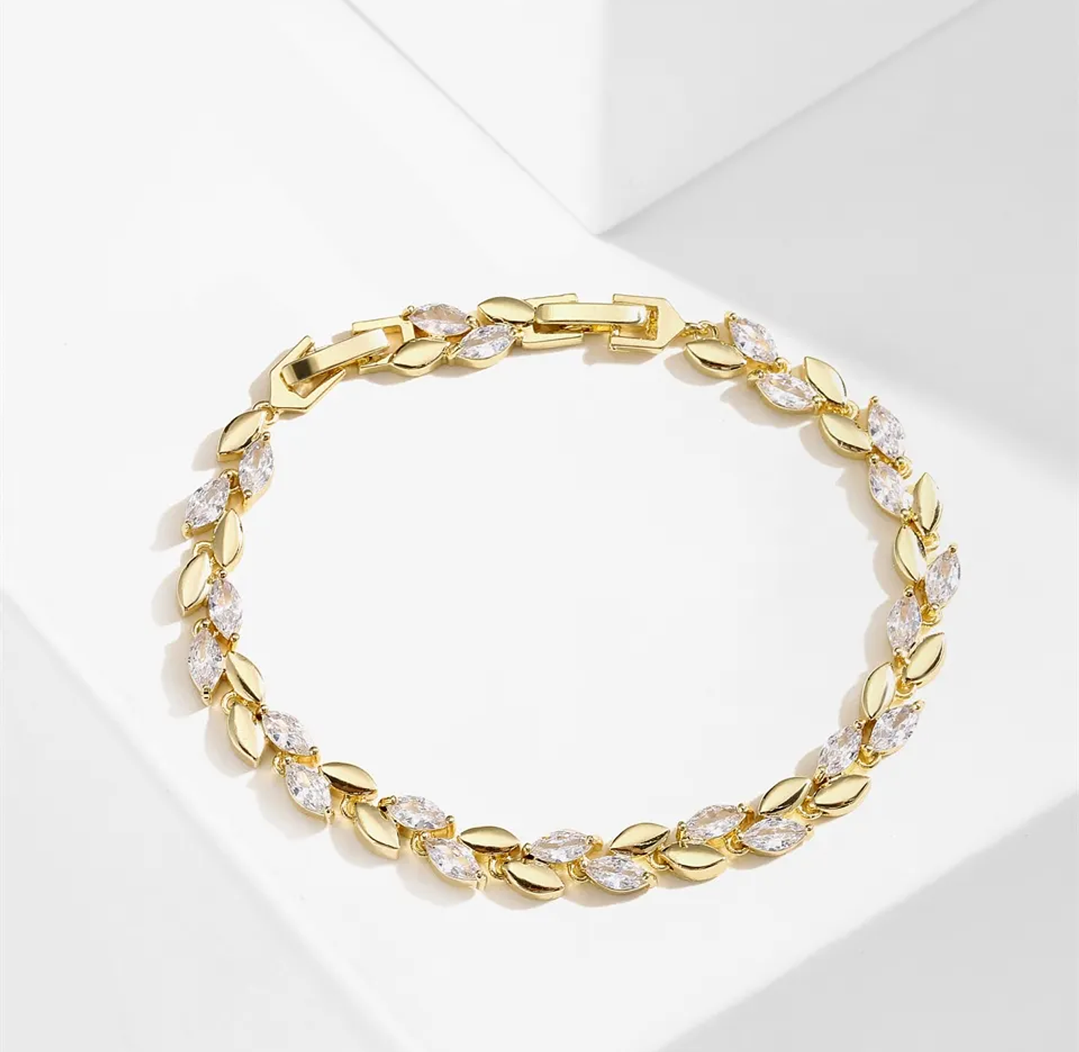 Embrace nature's beauty with this exquisite leaf Cubic Zirconia bracelet, a perfect blend of elegance and organic charm