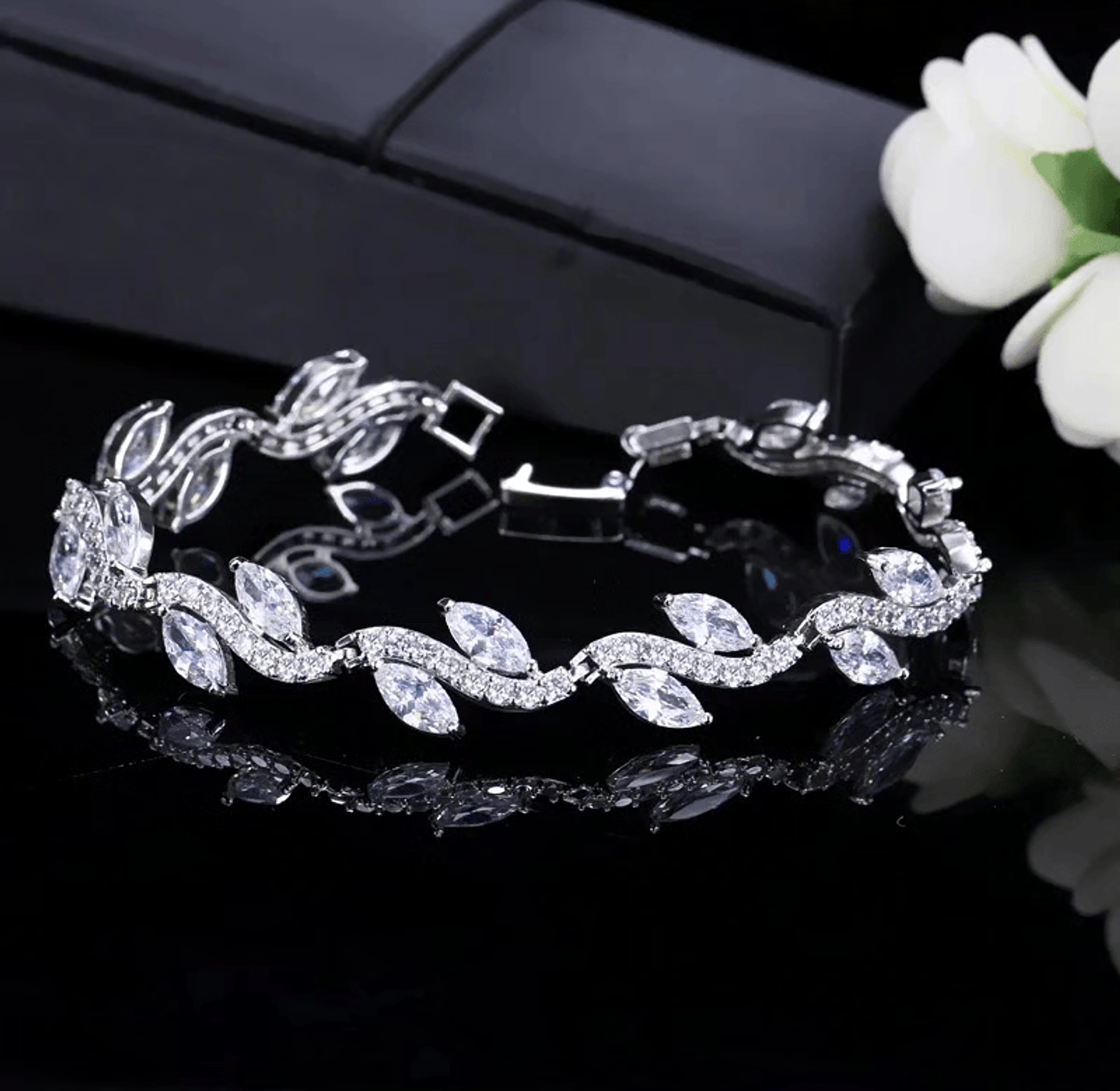 Embrace nature's elegance with this stunning leaf-shaped Zirconia bracelet, a perfect accessory that adds a touch of sophistication to any outfit.