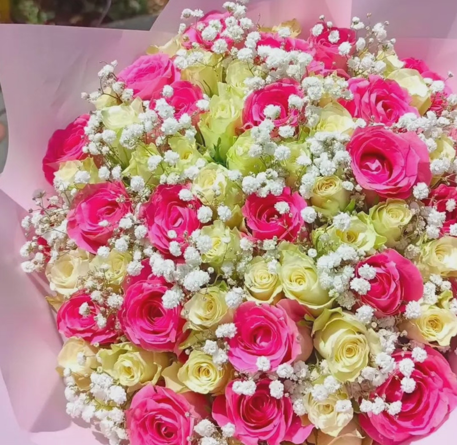 A delicate symphony of blossoming pink and white roses, artfully intertwined with wisps of white baby's breath, this premium bouquet embodies tender affection, new beginnings, and heartfelt admiration. It's an exquisitely balanced expression of pure beauty and gentle sentiment.