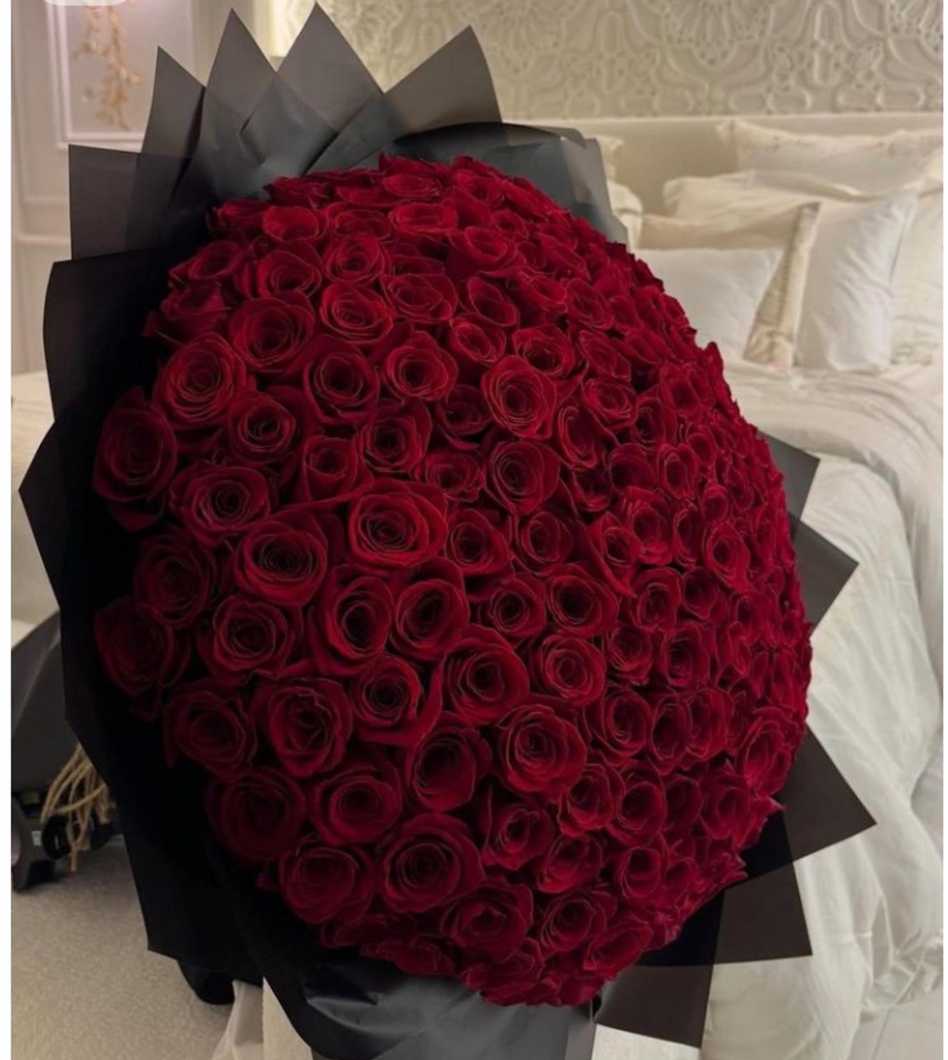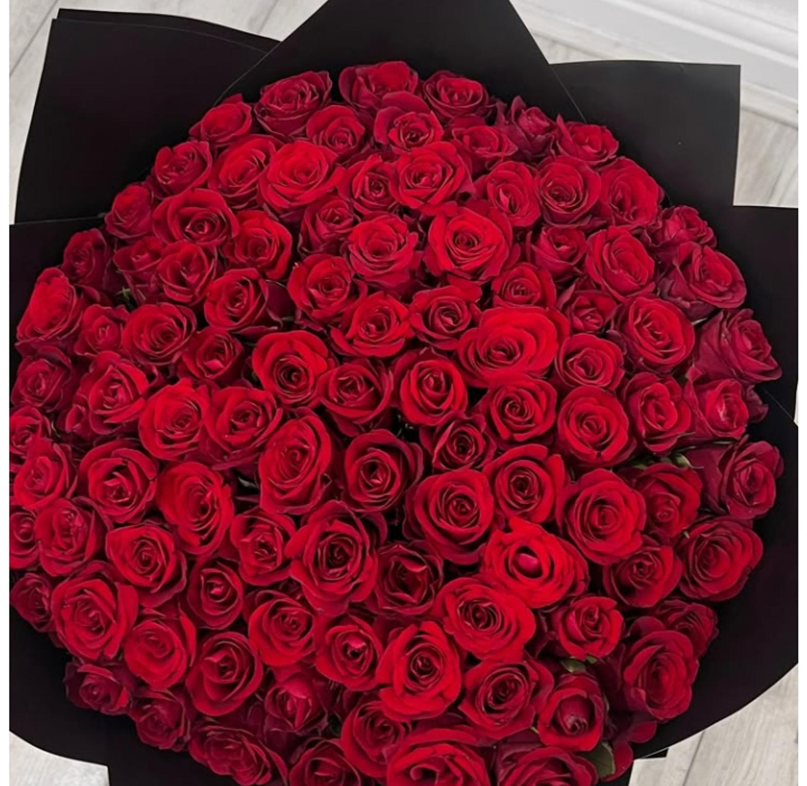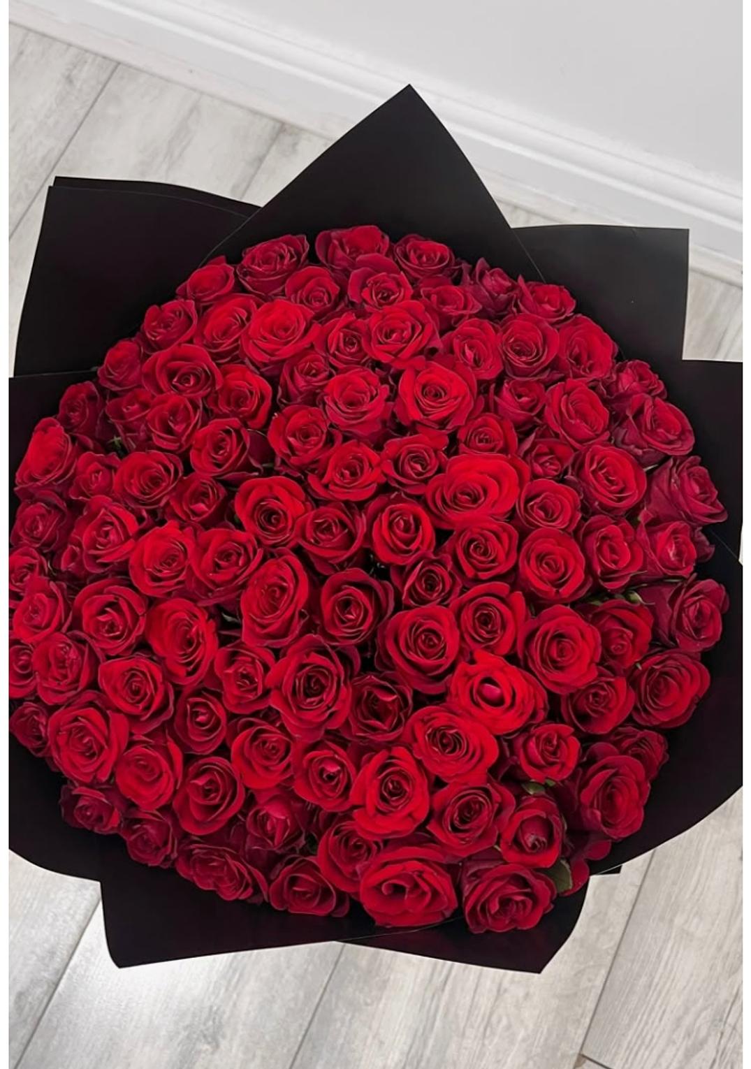 This bouquet is a sight to behold with 100 fresh roses. Take her breath away