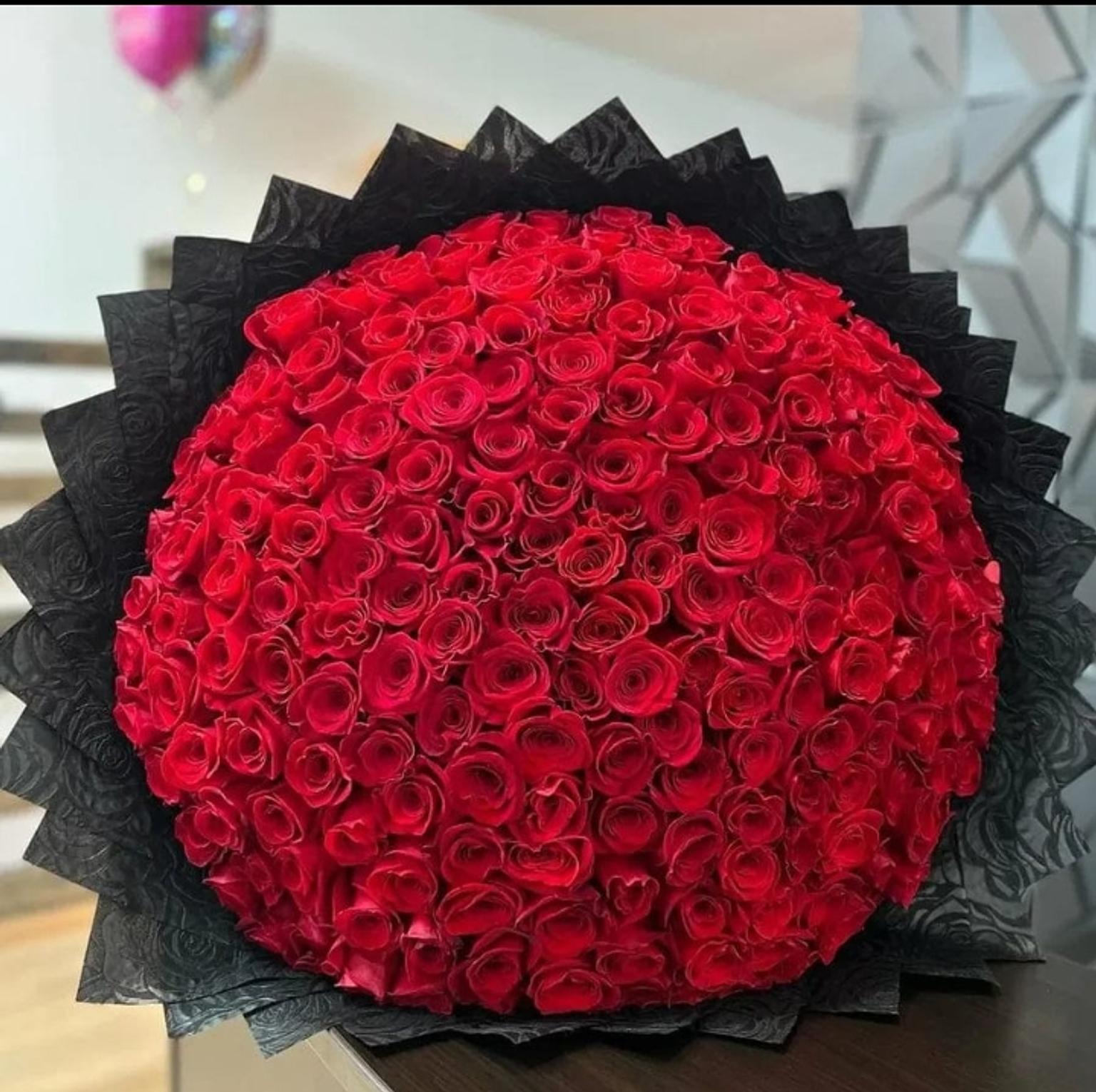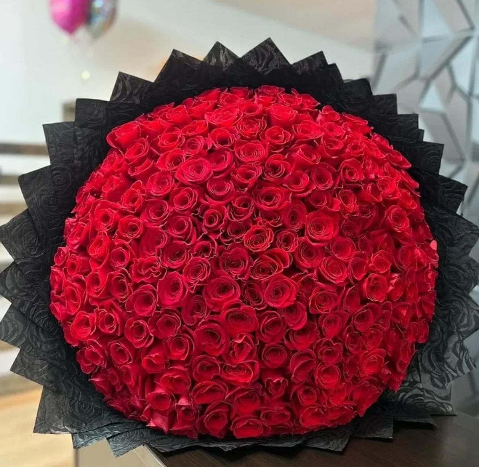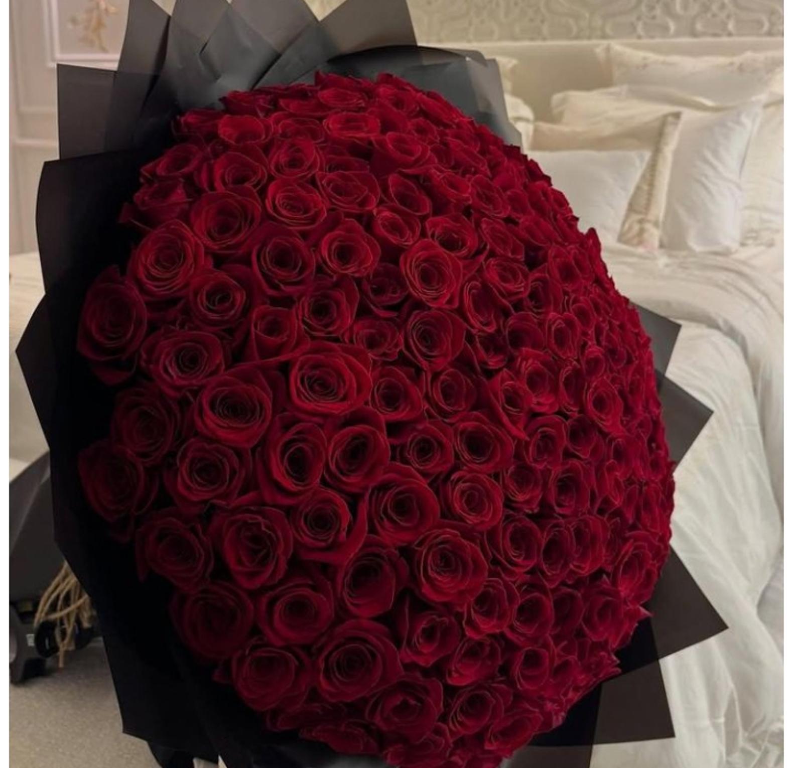 This bouquet is a sight to behold with 100 fresh roses. Take her breath away