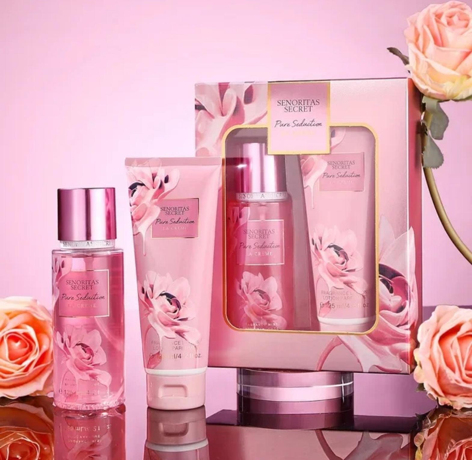 This heavenly perfume box contains 125ml Perfume Body Mist and 125ml Perfume Lotion. It's packed in a beautiful box making it perfect for gifting. It's a fruity fragrance with notes of caramel apple and gardenia.