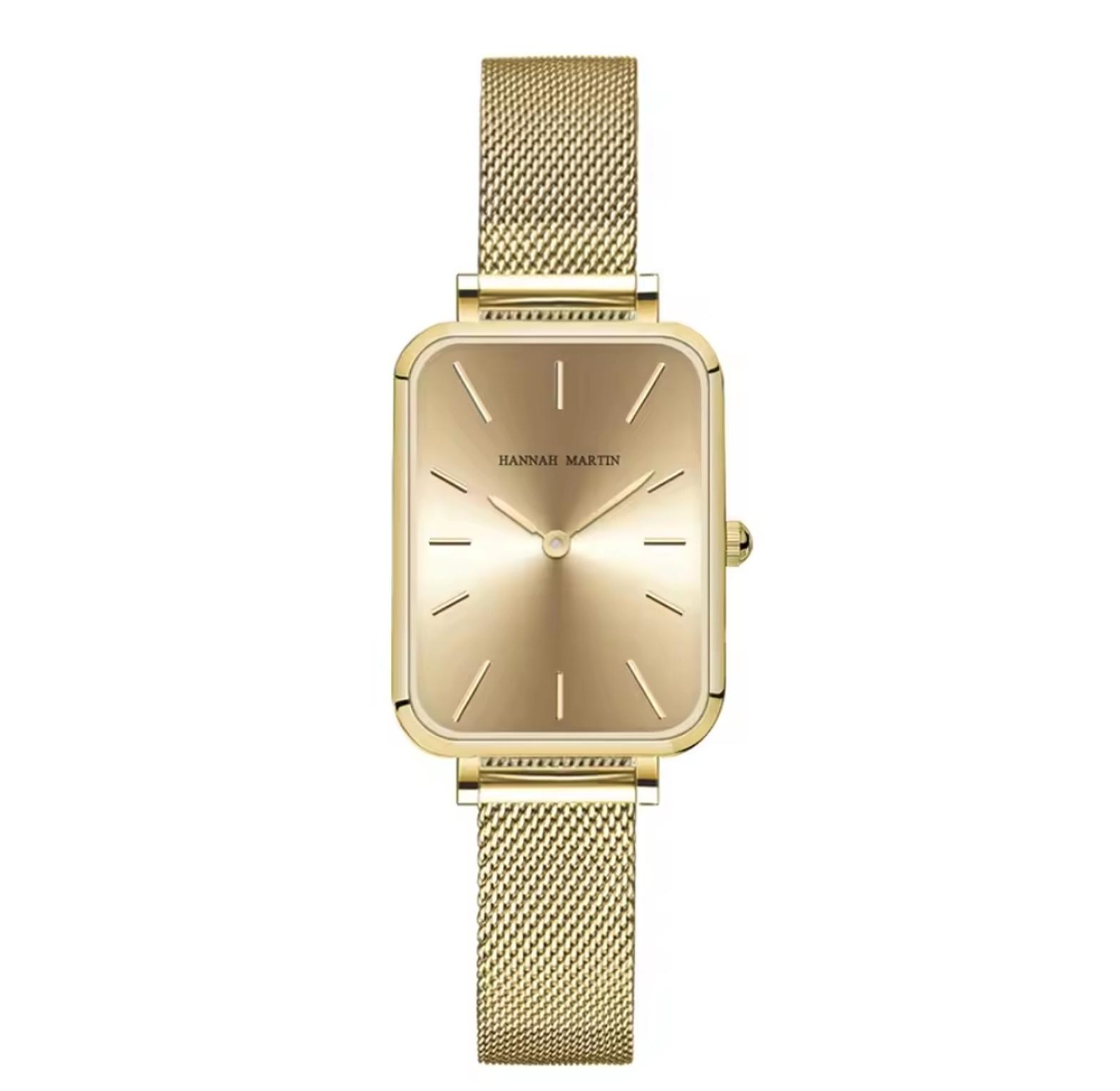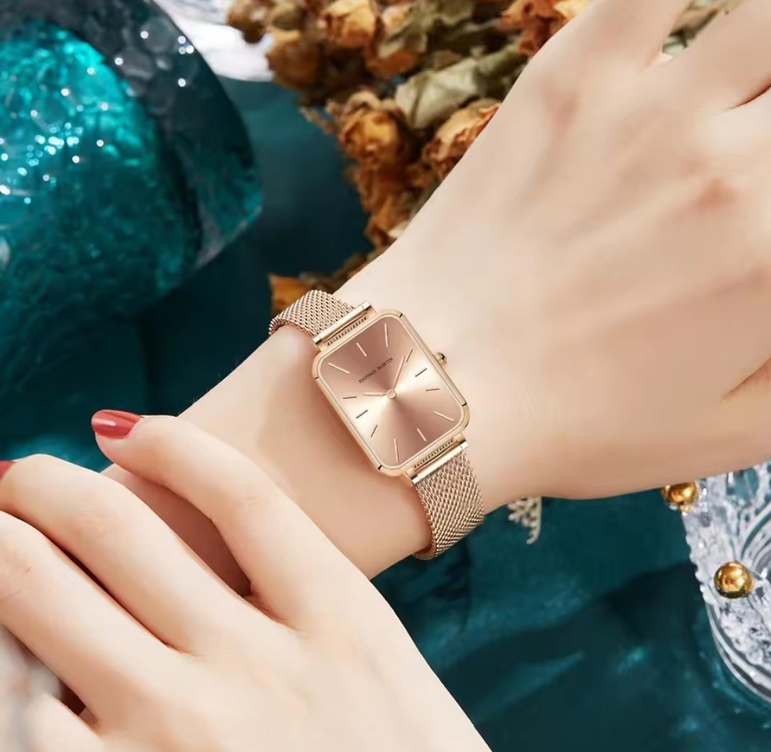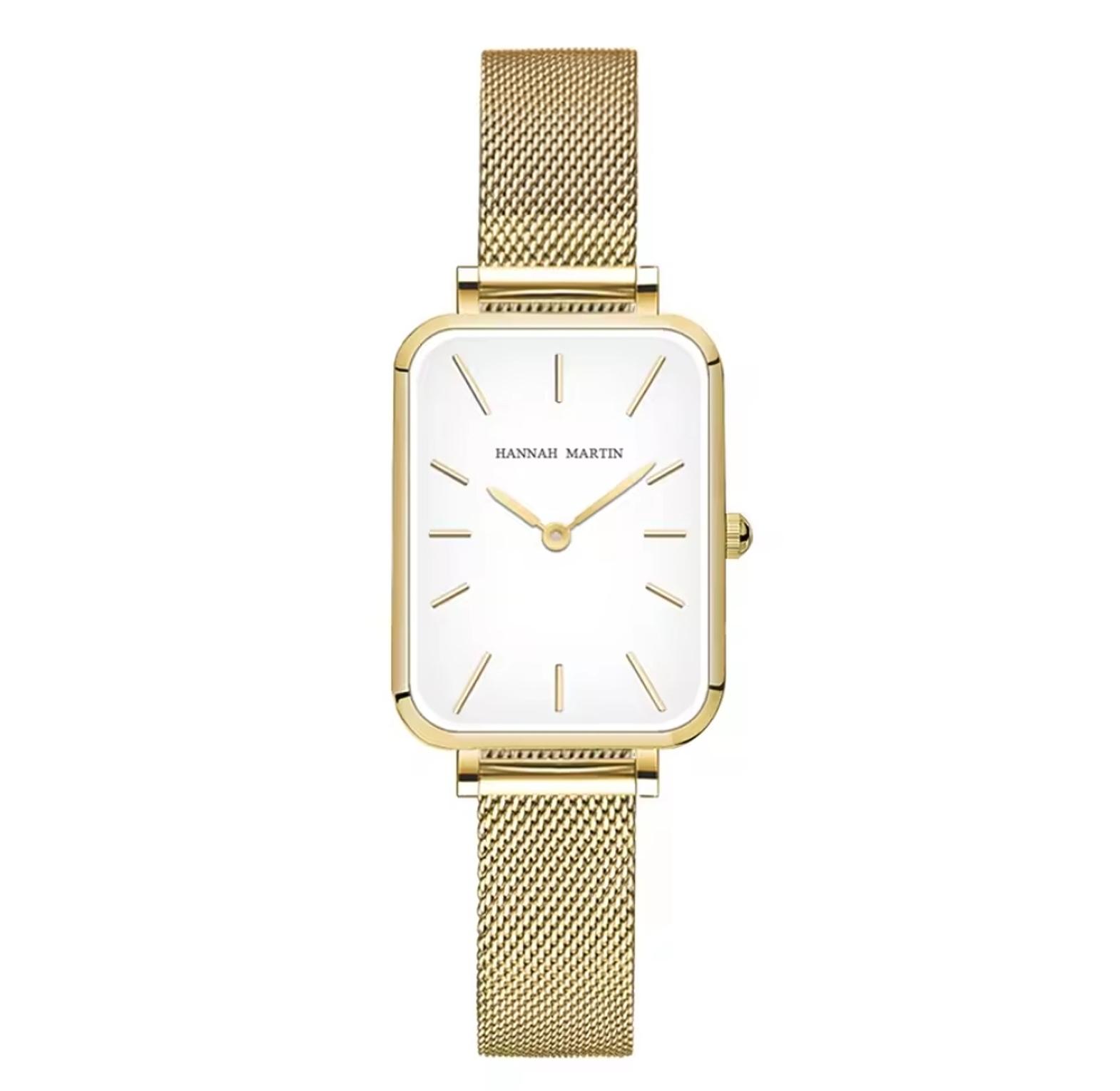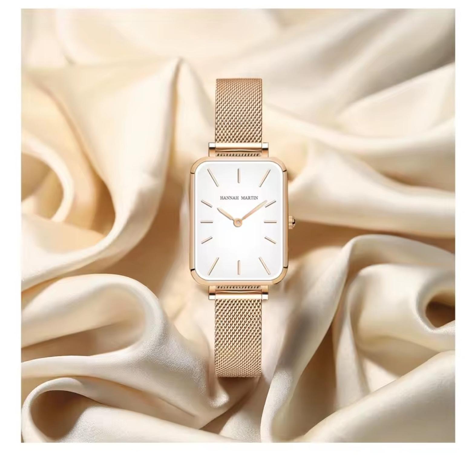 Rectangular Classy Hannah Martin Watch. Stainless steel mesh straps. Waterproof, Japan Quartz Movement, Hardlex Face