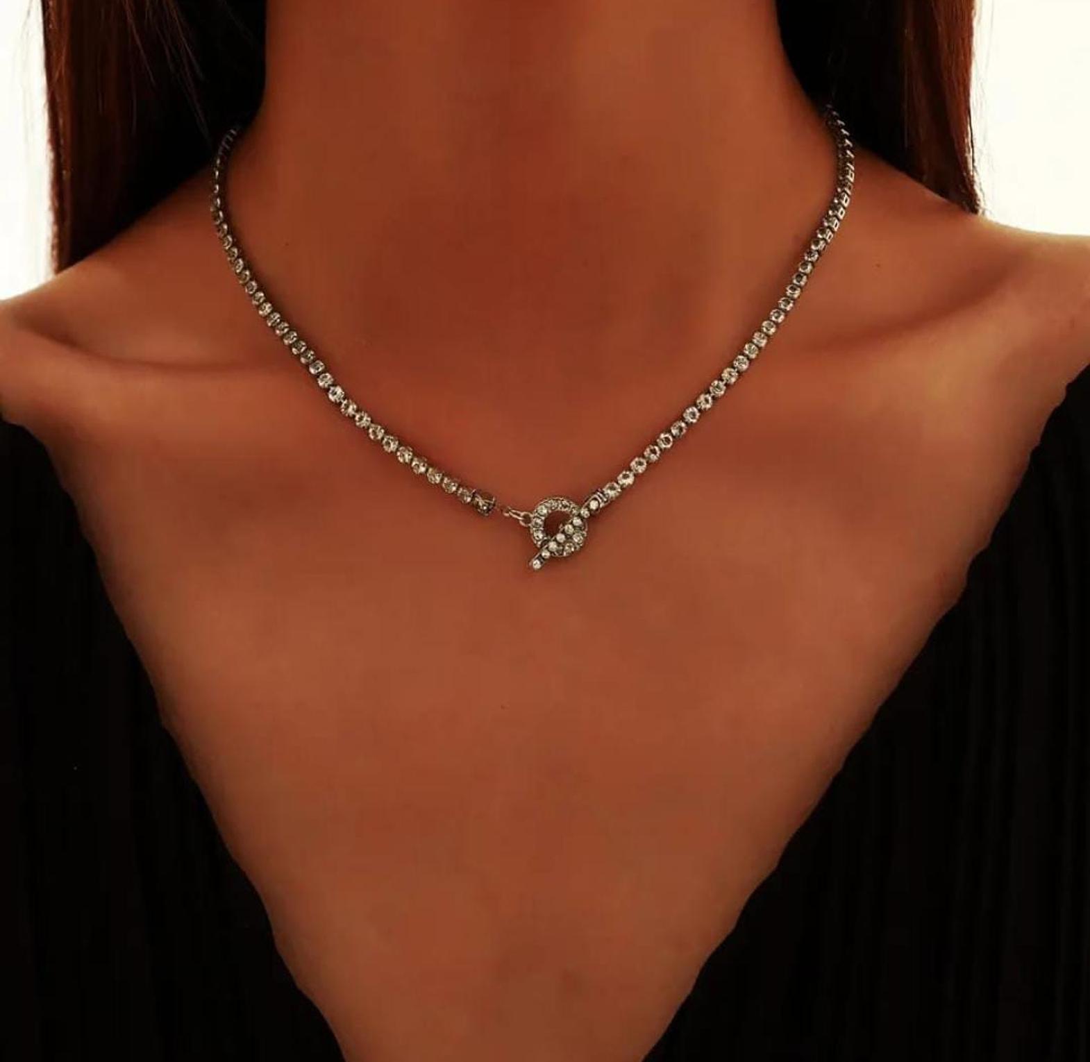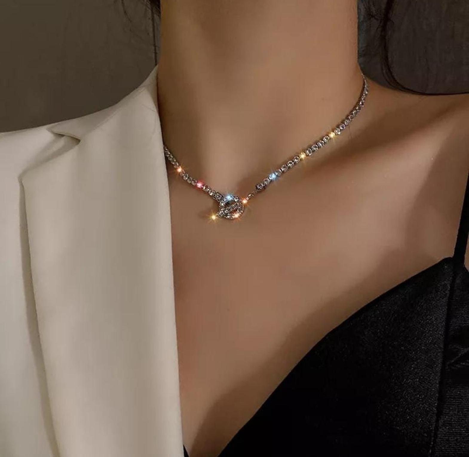 Make a bold statement with this glamorous rhinestone choker necklace, perfect for adding sparkle to any outfit.