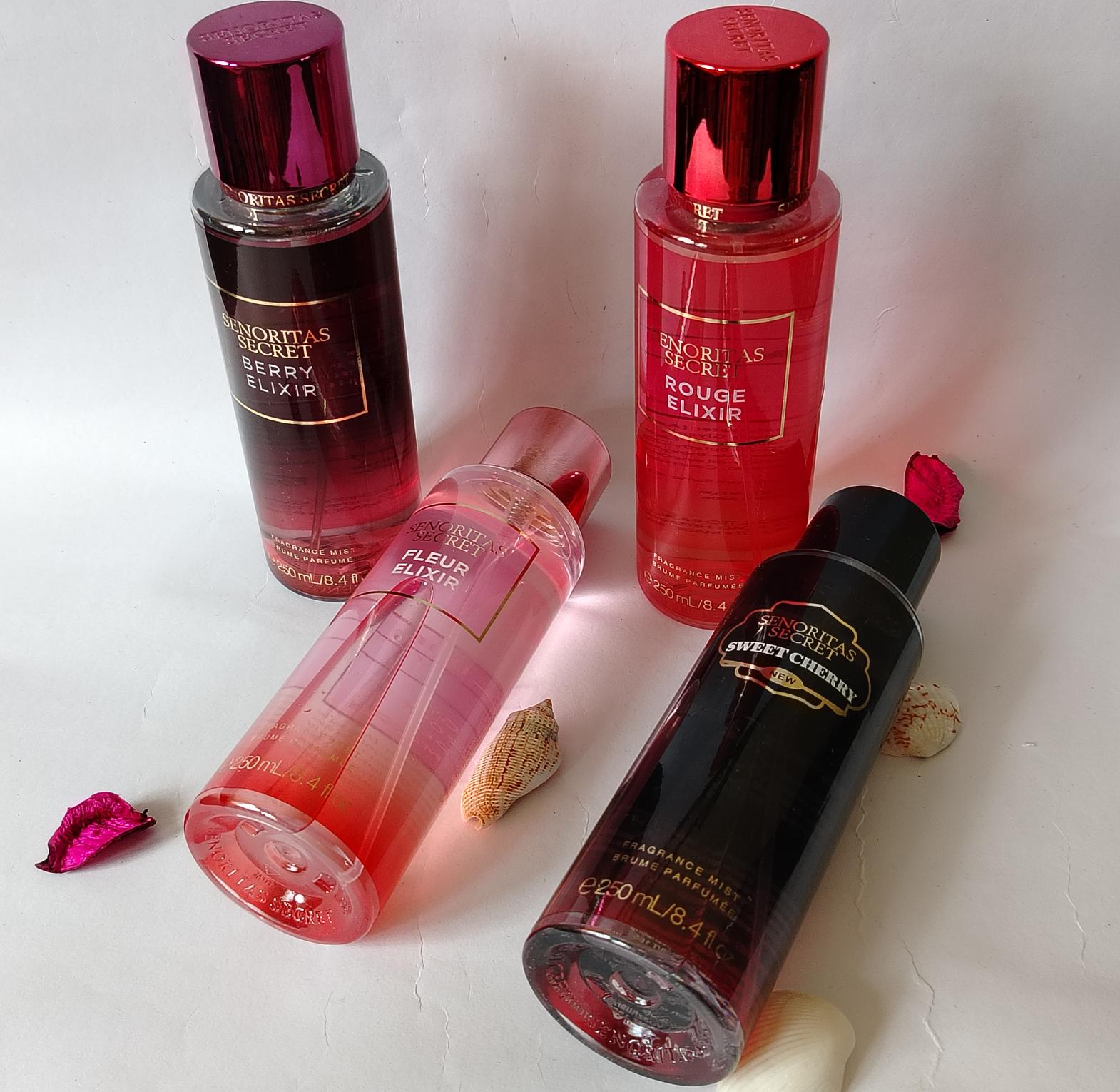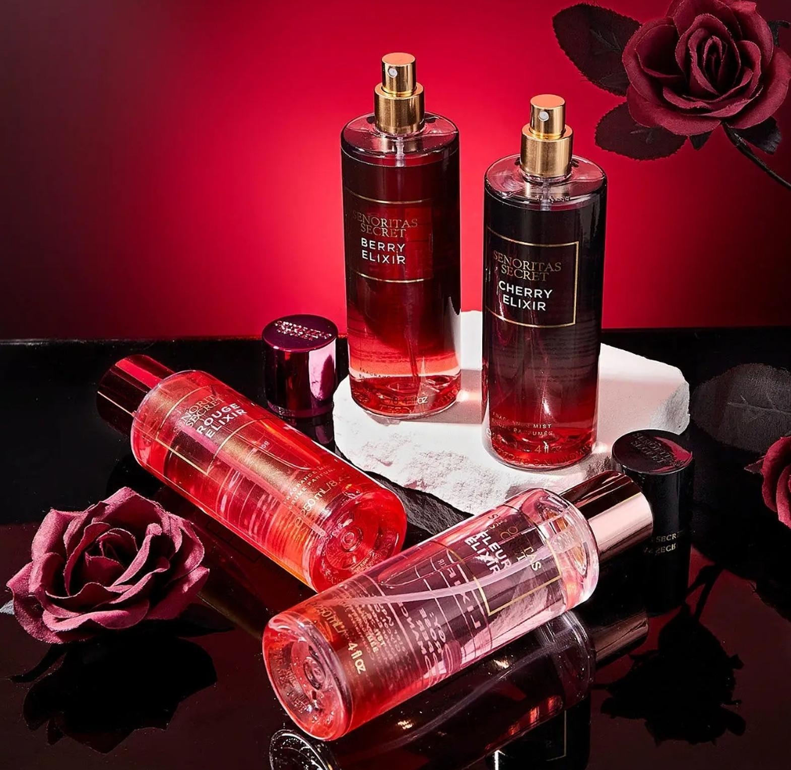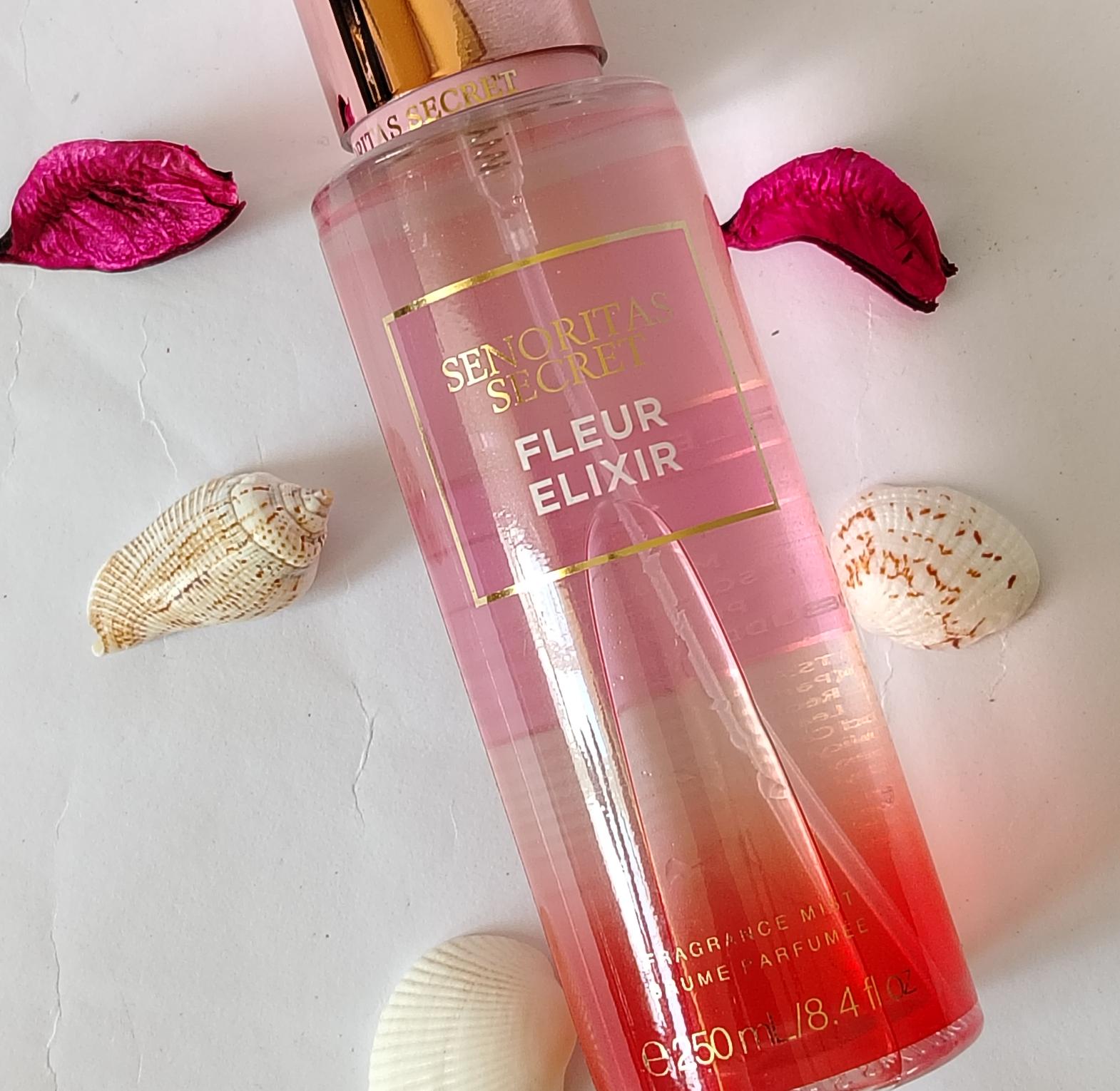 The Senoritas Secret Fleur Elixir Body Mist is a floral fragrance with notes of scarlet rose and pink pepper. It's a beautiful, sweet scent.