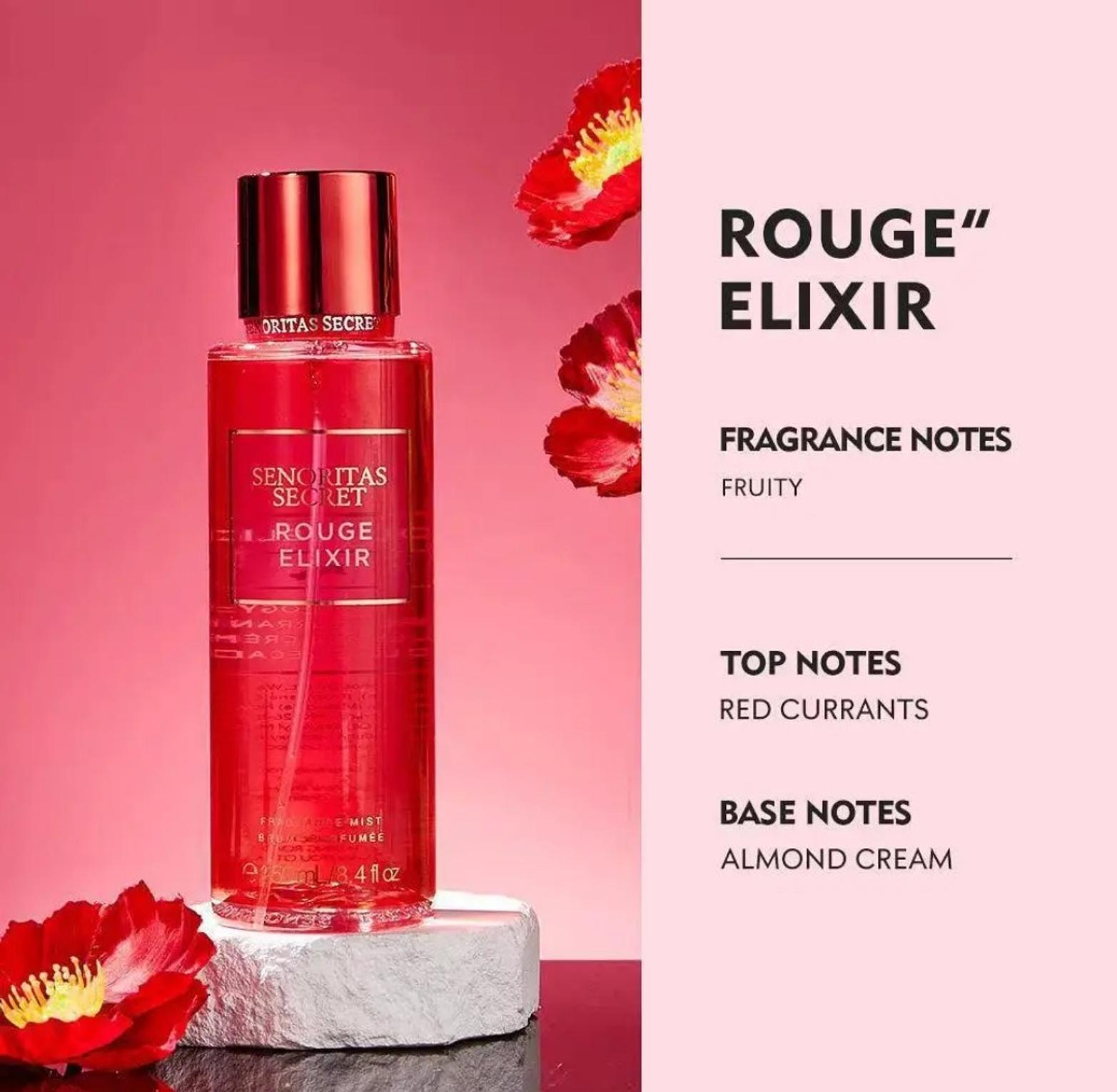 Senoritas Secret Rouge Elixir Body Mist is a fruity fragrance with notes of red currants and almond cream. It's an exotic body mist that makes for a unique signature scent.