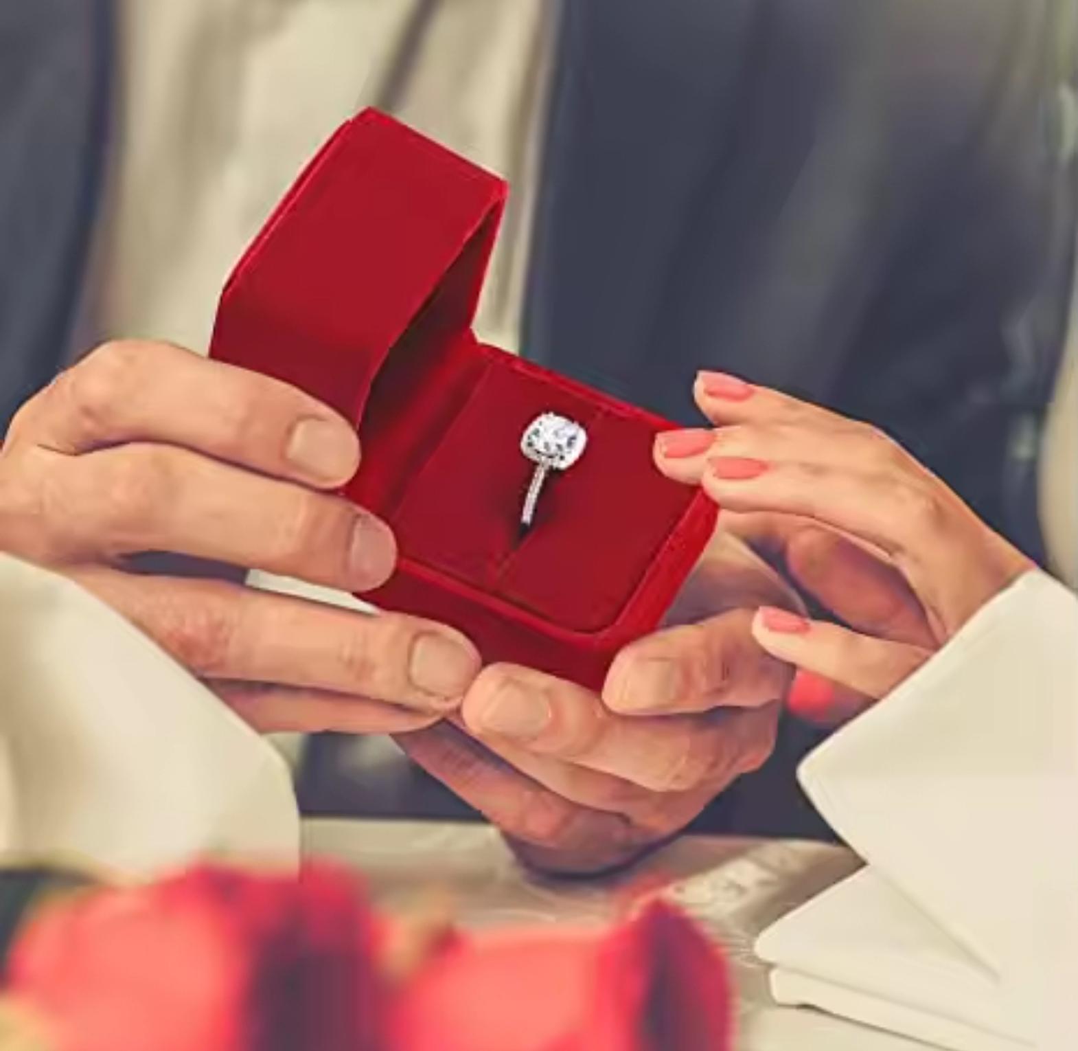 A luxurious square velvet ring box designed to present and protect your jewelry with elegance and charm.