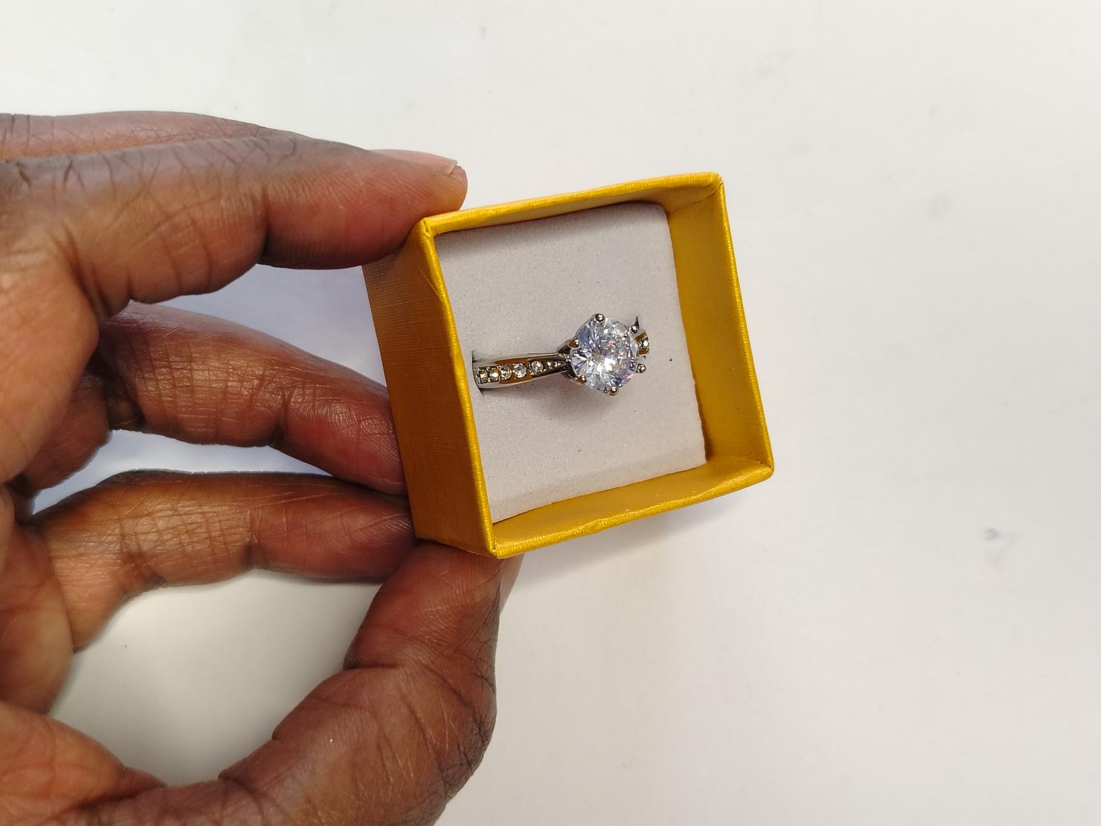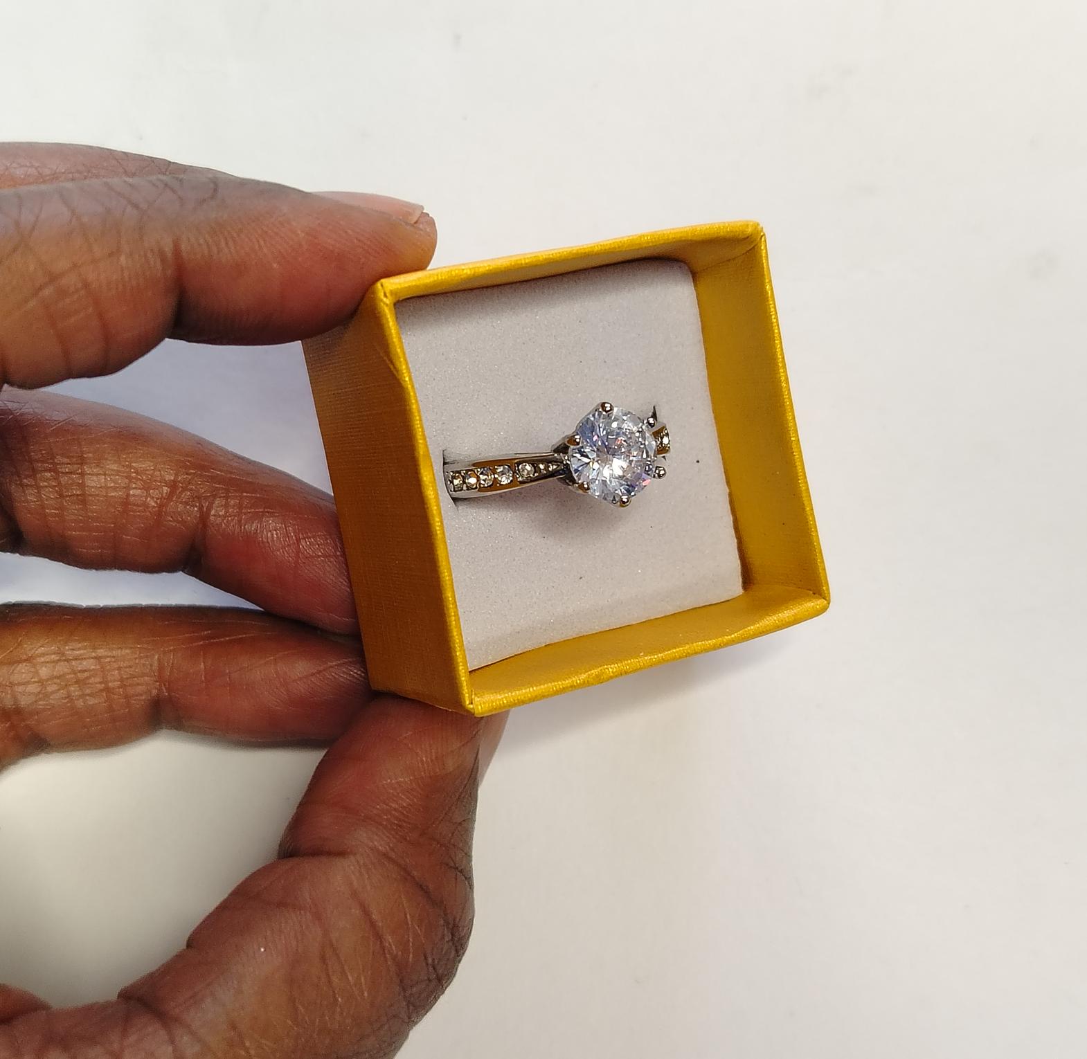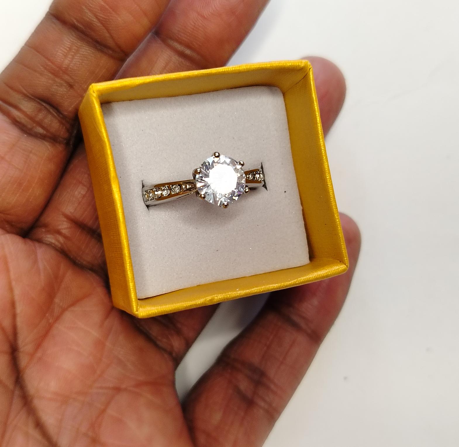 Immaculately crafted cubic zirconia stones set in polished Stainless steel to create a beautiful and durable engagement ring