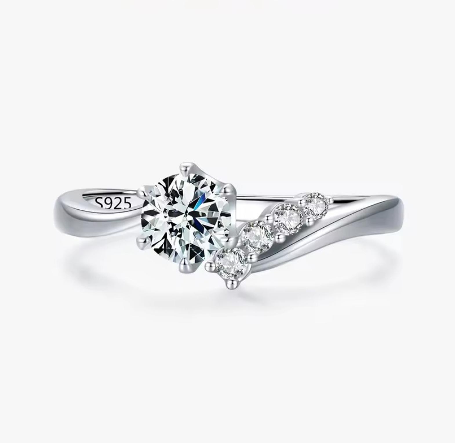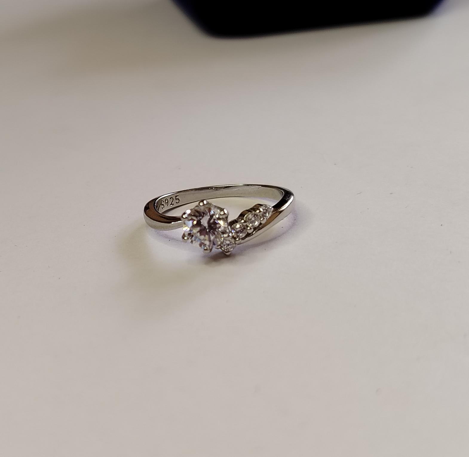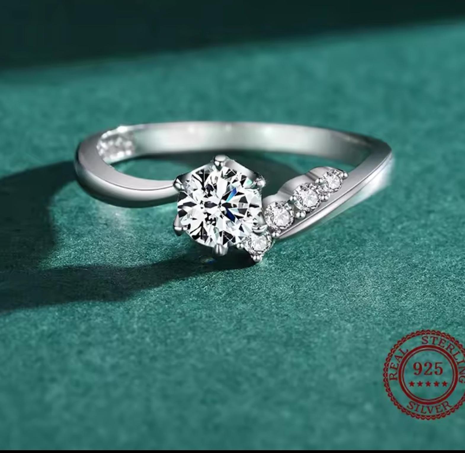 Mark your unique bond with this Promise Ring, showcasing a brilliant Cubic Zirconia held by an innovative asymmetrical six-claw setting. Crafted in sleek sterling silver, its minimalist design offers a distinct yet timeless symbol of commitment.