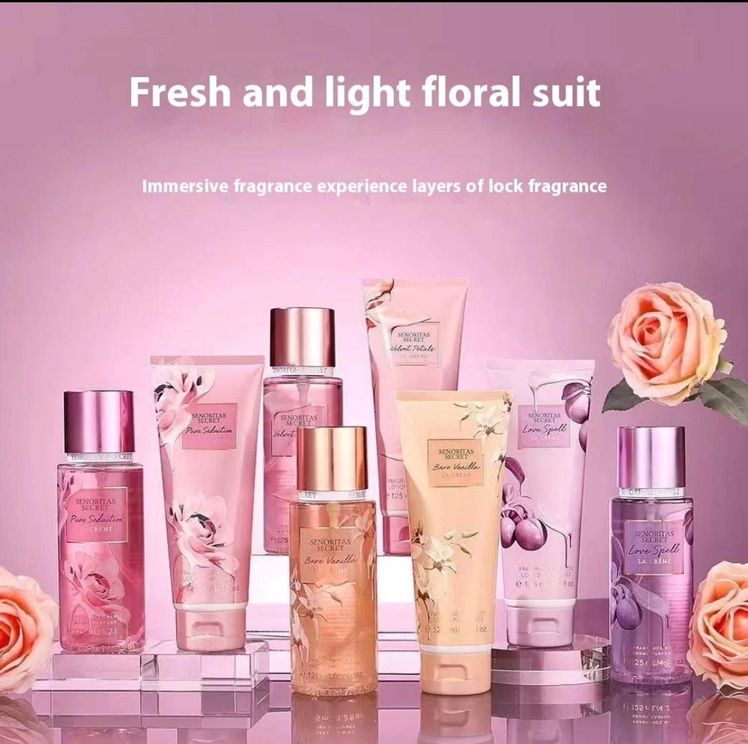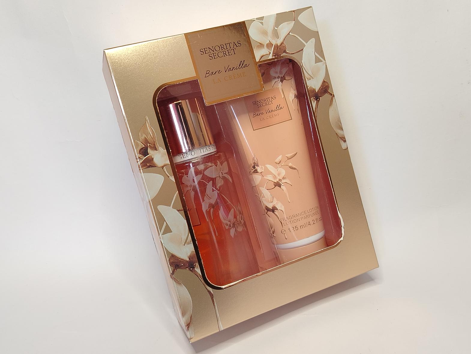 Senoritas Secret Bare Vanilla La Creme Perfume Gift Set contains 125ml Body Mist & 125ml Perfume Lotion with notes of warm fragrances, vanilla orchid and cotton candy.