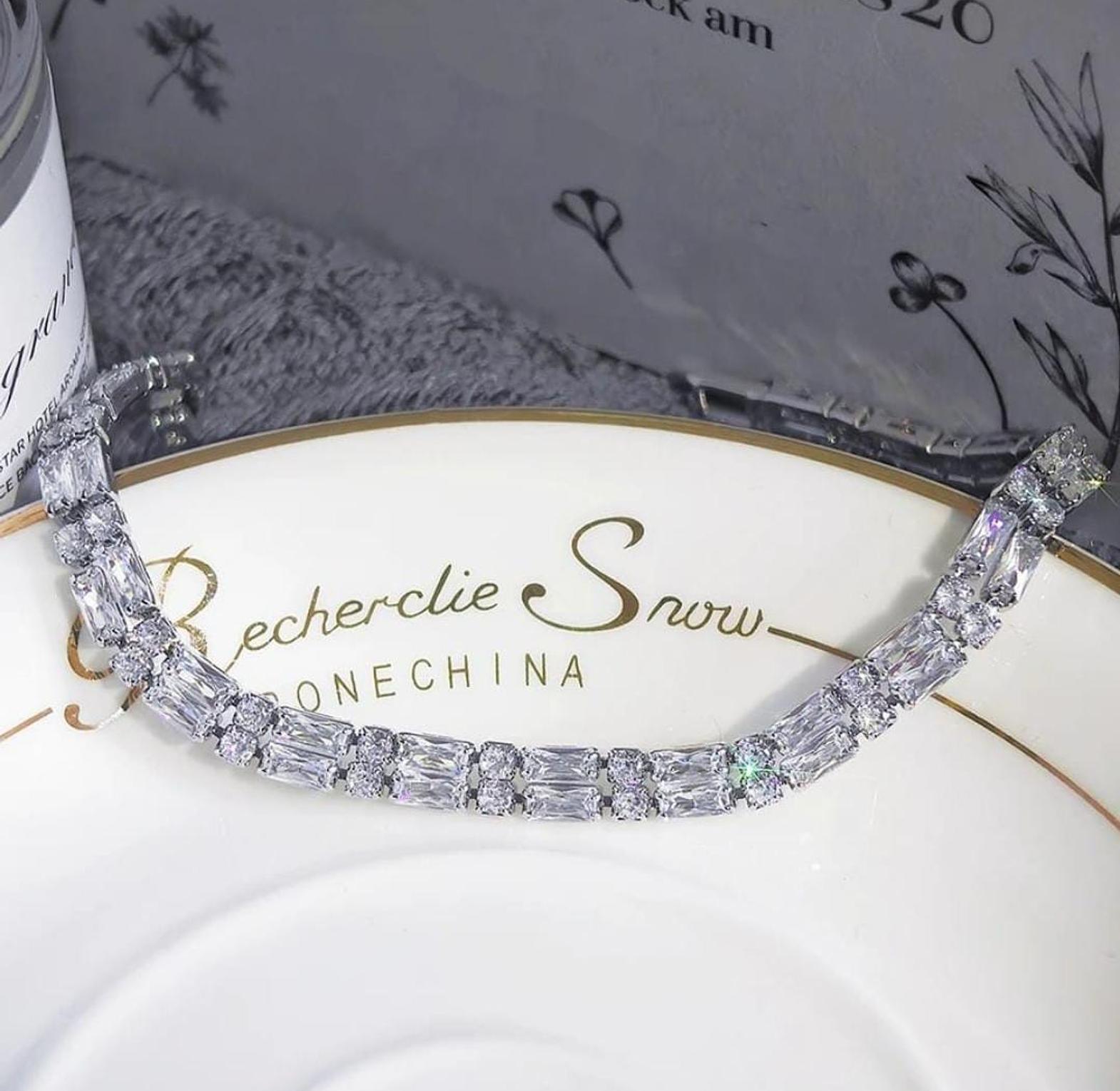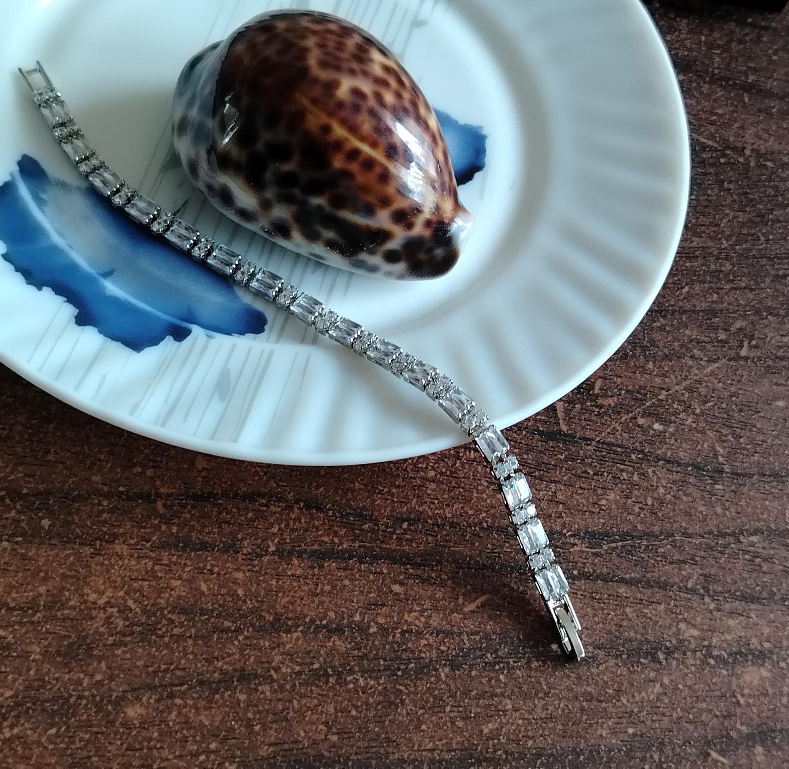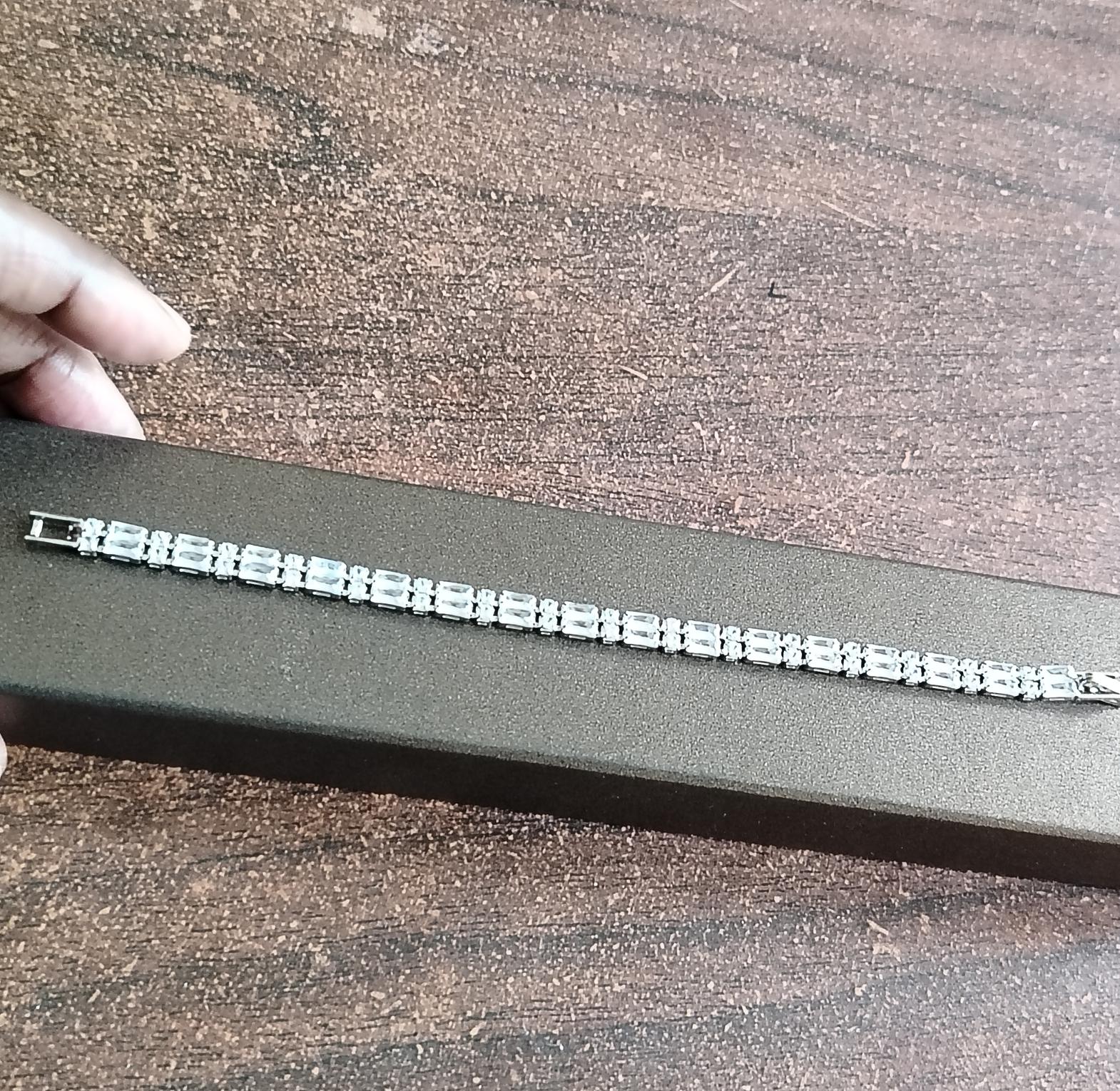 This stunning box chain Cubic Zirconia bracelet is a chic and contemporary accessory that brings a touch of glamour to any outfit. Featuring a unique box chain design, each link is intricately crafted to create a sleek and sophisticated look. The bracelet is adorned with sparkling Cubic Zirconia stones that catch the light beautifully, adding a dazzling effect that enhances its overall appeal. Made from high-quality materials, this bracelet ensures durability while maintaining a lightweight and comfortable fit for everyday wear. The adjustable clasp allows for easy wear, making it suitable for any occasion, whether casual or formal. Whether worn alone for a minimalist statement or layered with other bracelets for a more dynamic look, this versatile box chain Cubic Zirconia bracelet is perfect for expressing your unique style. Ideal as a gift for a loved one or as a personal indulgence, it embodies elegance and modern charm, making it a cherished addition to your jewelry collection.