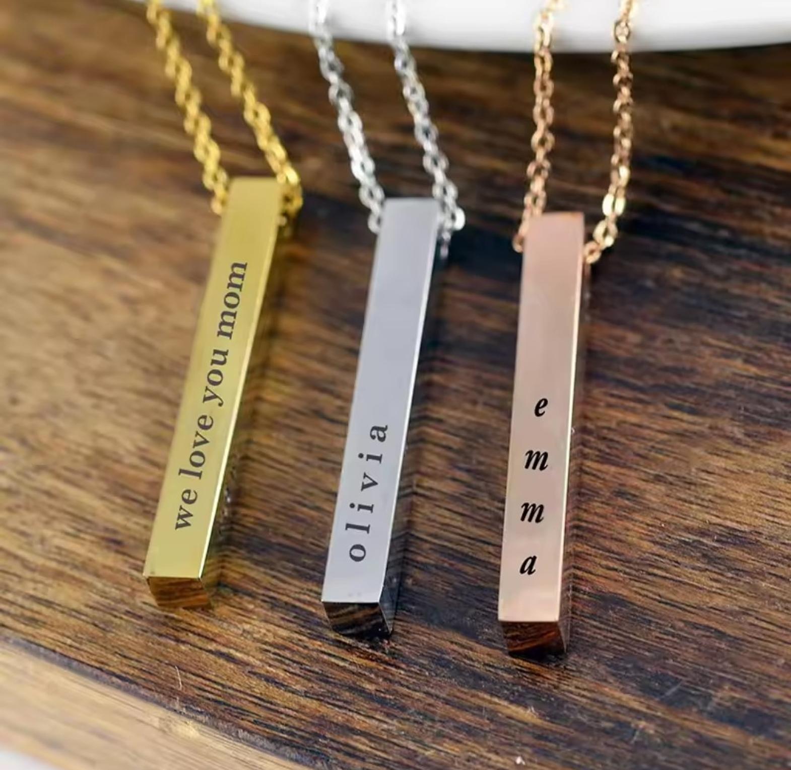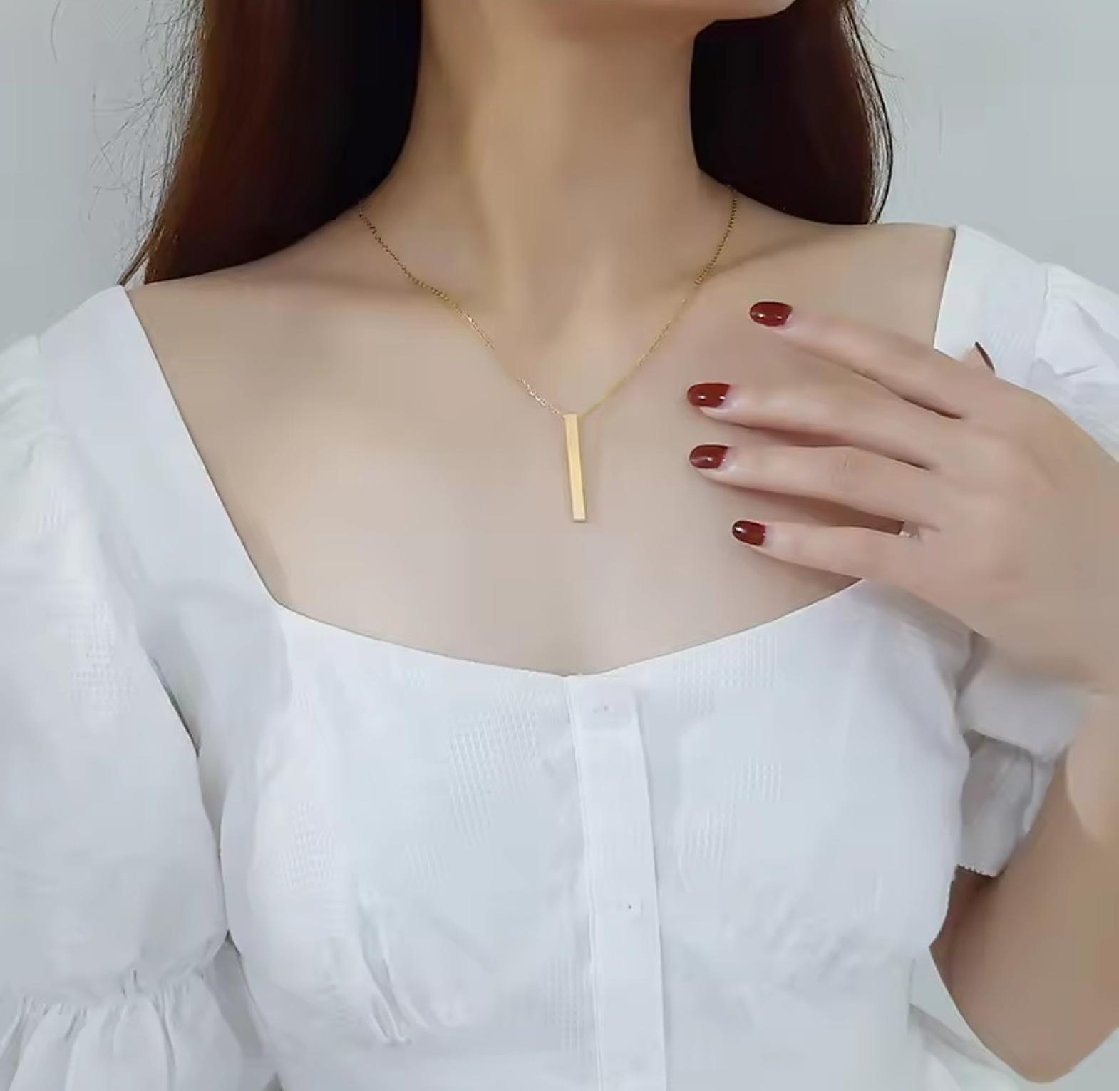 Carry your story close with our Bar Necklace, a stylish and durable stainless steel piece ready for your personal touch. Available in sleek silver, luxurious gold, or bold black, this unisex necklace offers timeless style and enduring personalization.