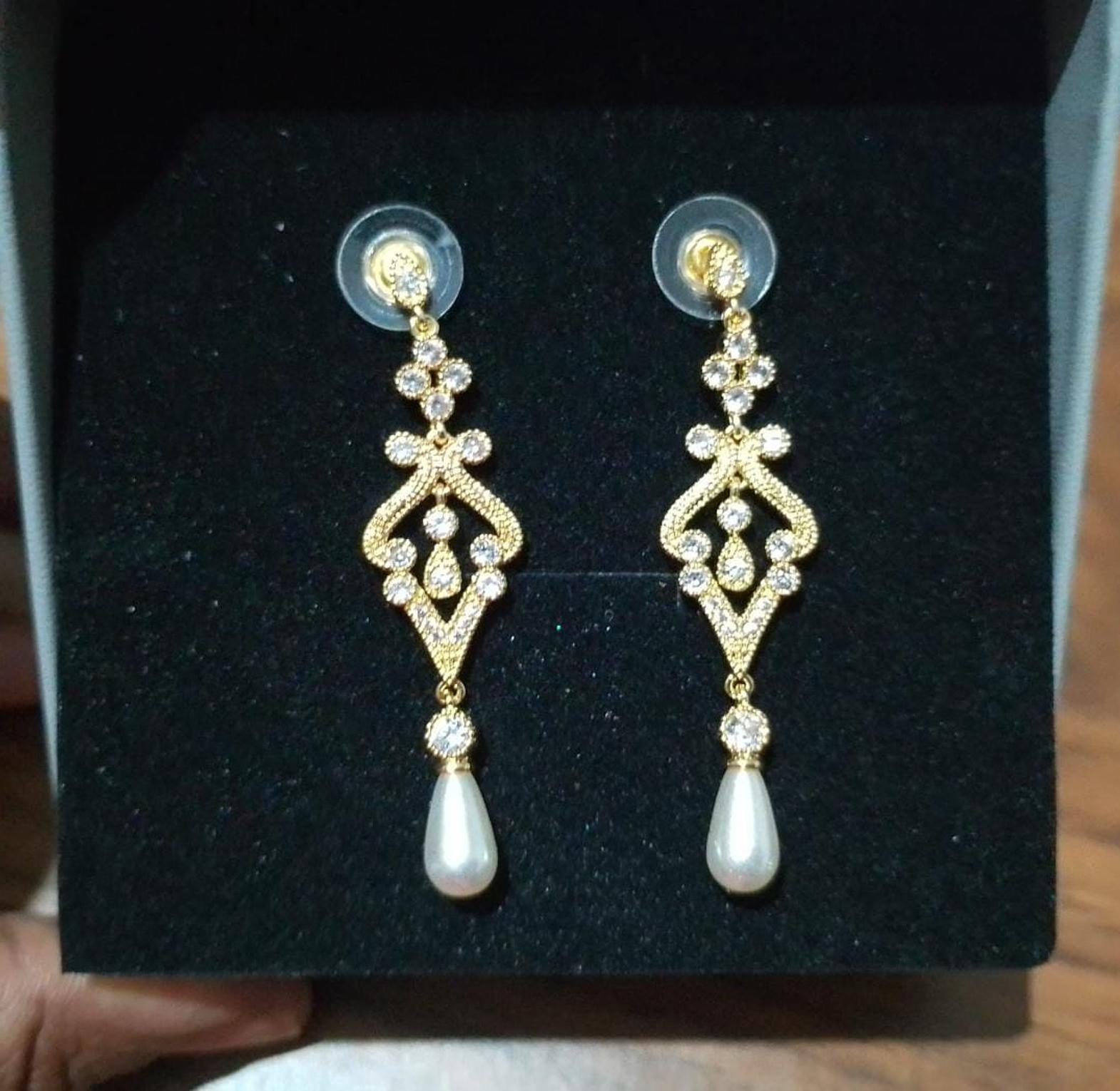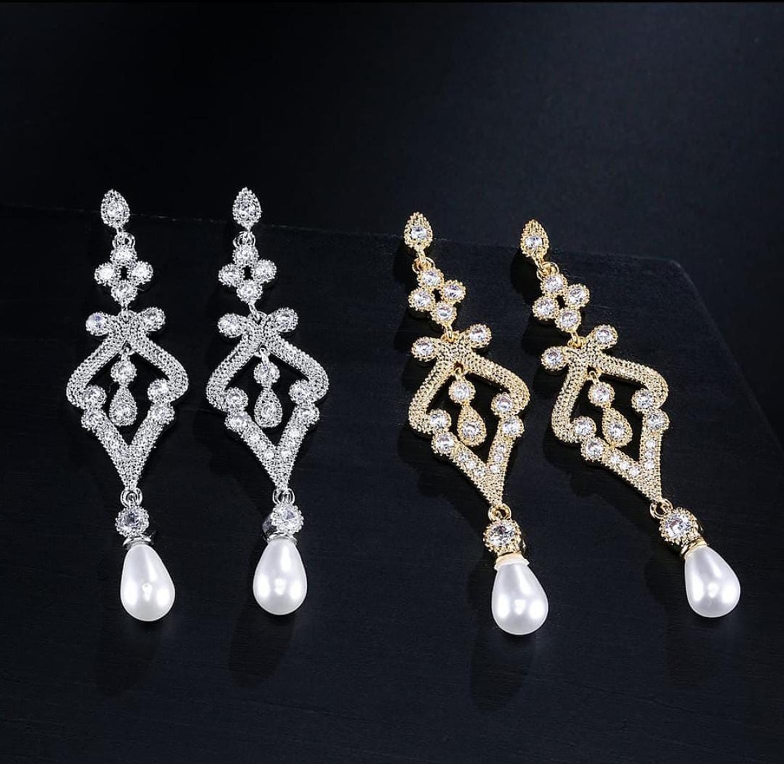 Timeless and elegant, these Cubic Zirconia pearl earrings combine classic beauty with modern sparkle