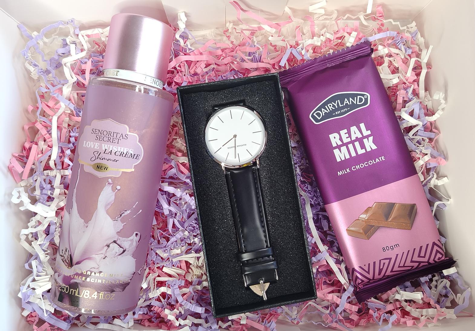 Hannah Martin Genuine Leather Watch, 250ml Senoritas Secret Body Mist and Chocolate 80g