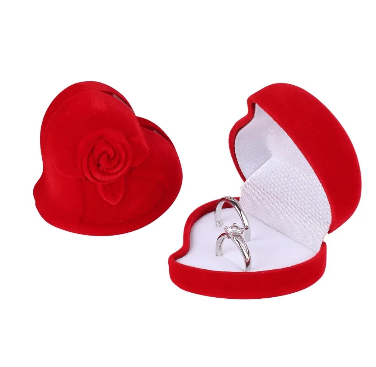 Present your cherished ring in our opulent Ring Box, a luxurious heart-shaped velvet sanctuary designed to add an extra touch of romance to your proposal or wedding day. Its plush interior lovingly cradles your precious symbol of love.
