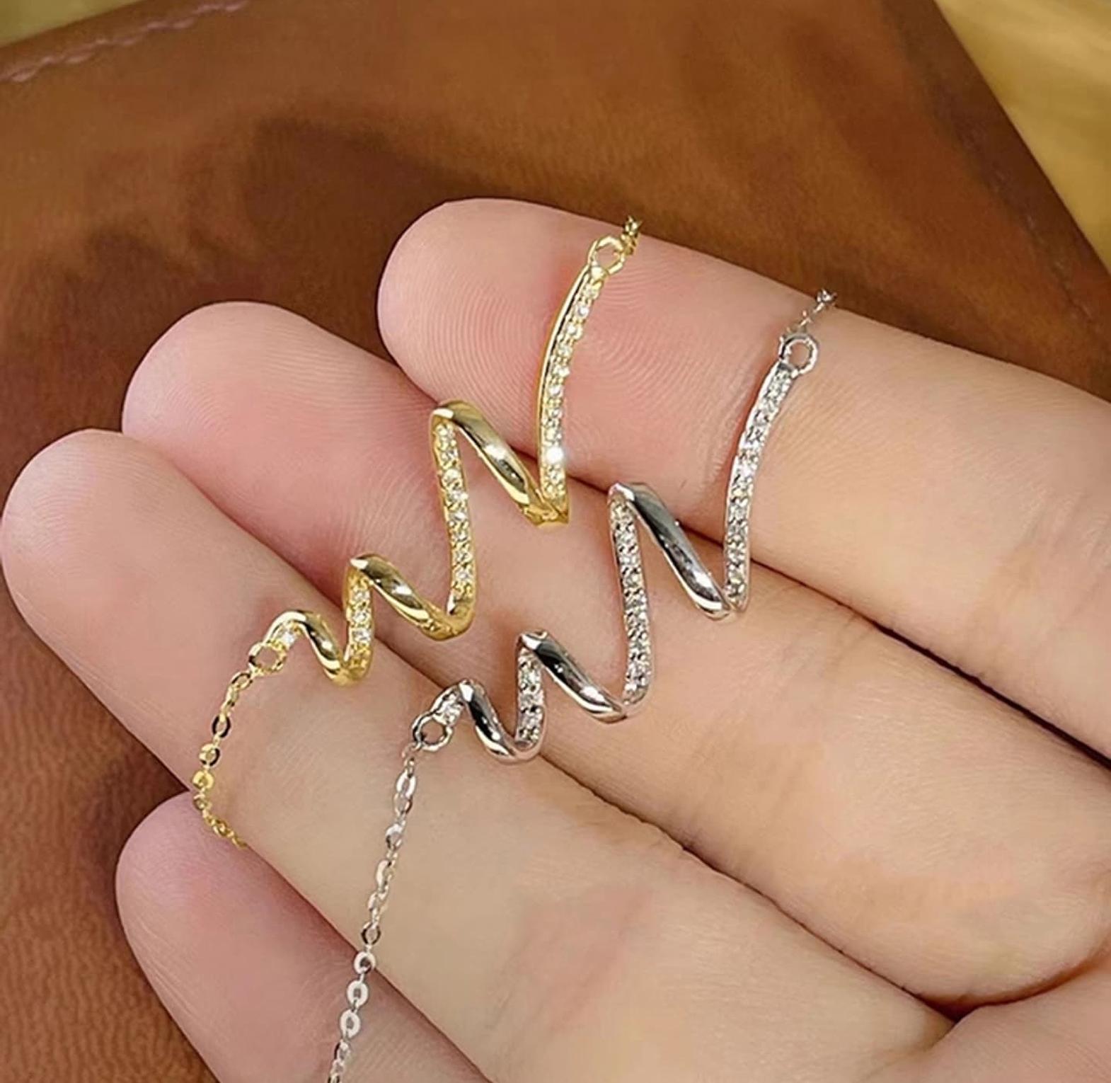 Capture the rhythm of your love with our Heartbeat Wave Necklace, featuring a unique heartbeat wave design. Crafted from brass with radiant plating, it's available in both opulent gold and sleek silver finishes, a perfect symbol of cherished moments and enduring connection.