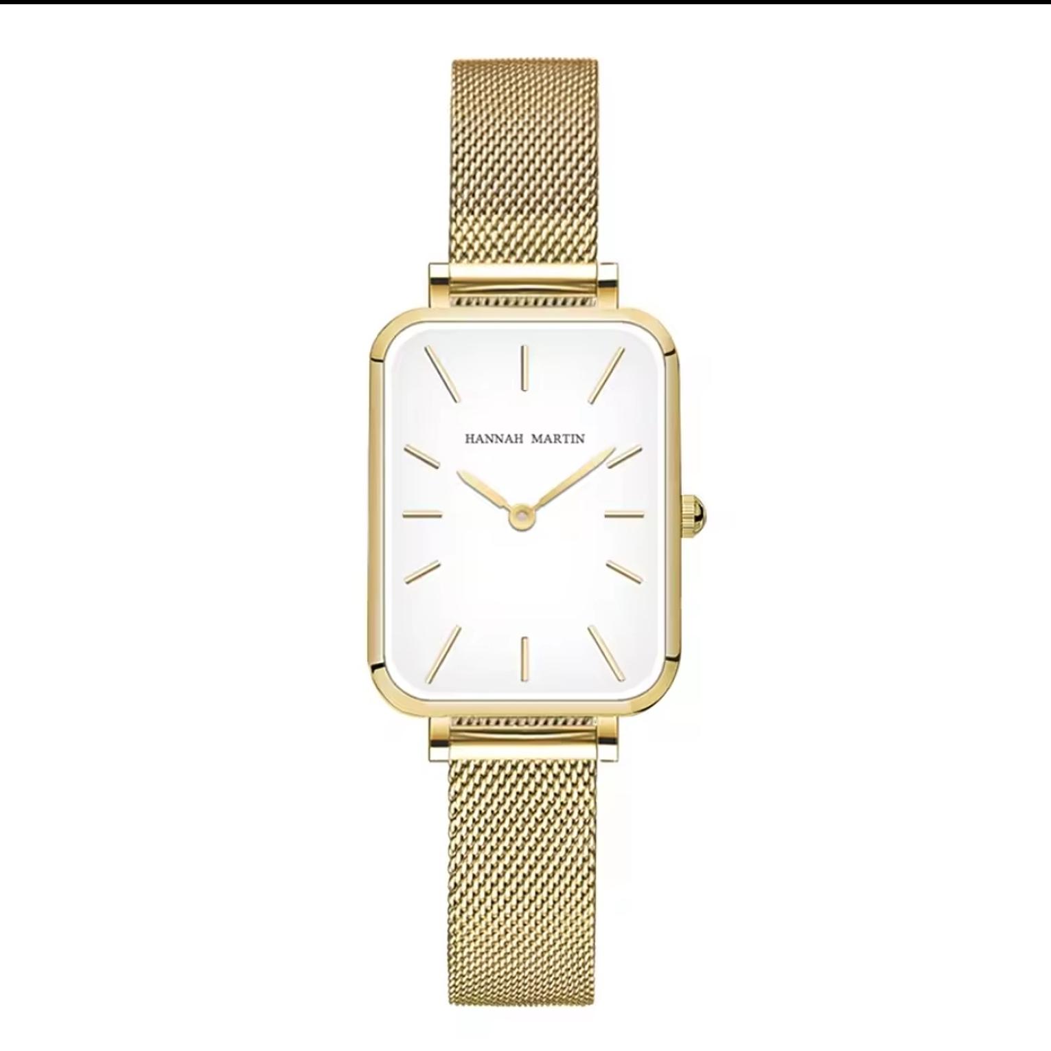 Rectangular Classy Hannah Martin Watch. Stainless steel mesh straps. Waterproof, Japan Quartz Movement, Hardlex Face