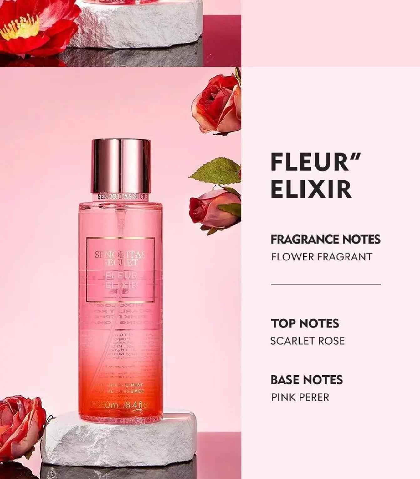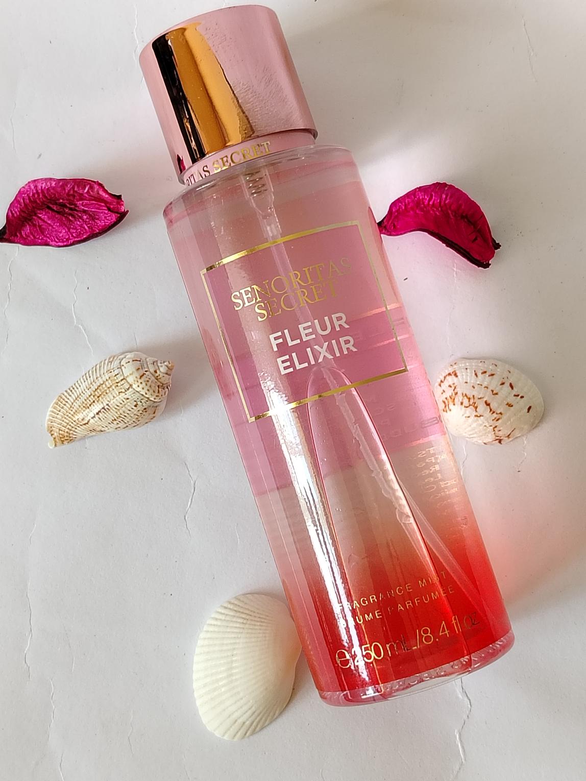 The Senoritas Secret Fleur Elixir Body Mist is a floral fragrance with notes of scarlet rose and pink pepper. It's a beautiful, sweet scent.