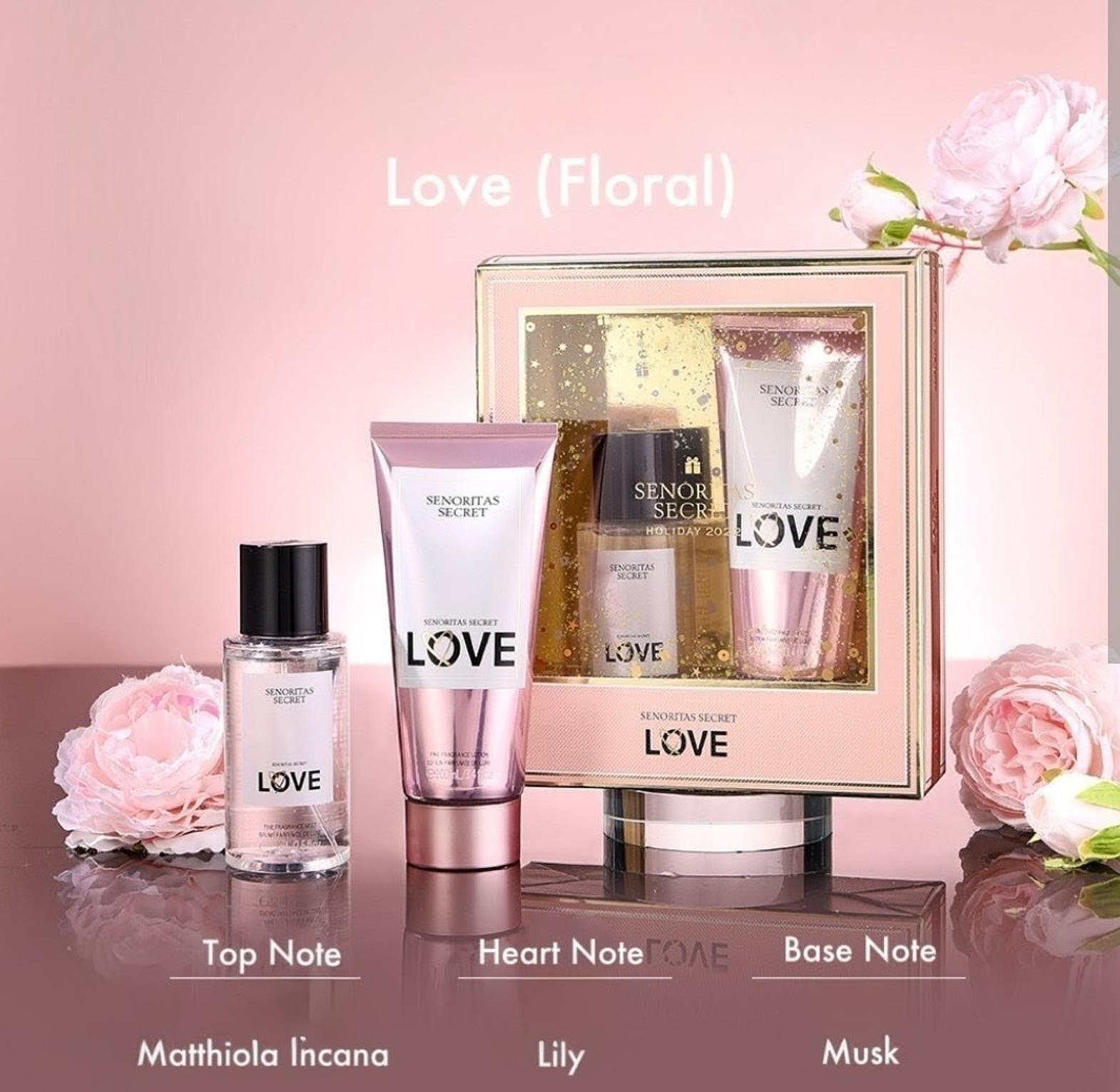 Senoritas Secret Love Perfume Gift Set contains 100ml Fragrance Lotion, 75ml Perfume. It's a floral scent with notes of violets, lily and musk. The name itself conveys the idea that it's the perfect gift for a special loved one. It's the ultimate romantic gift.