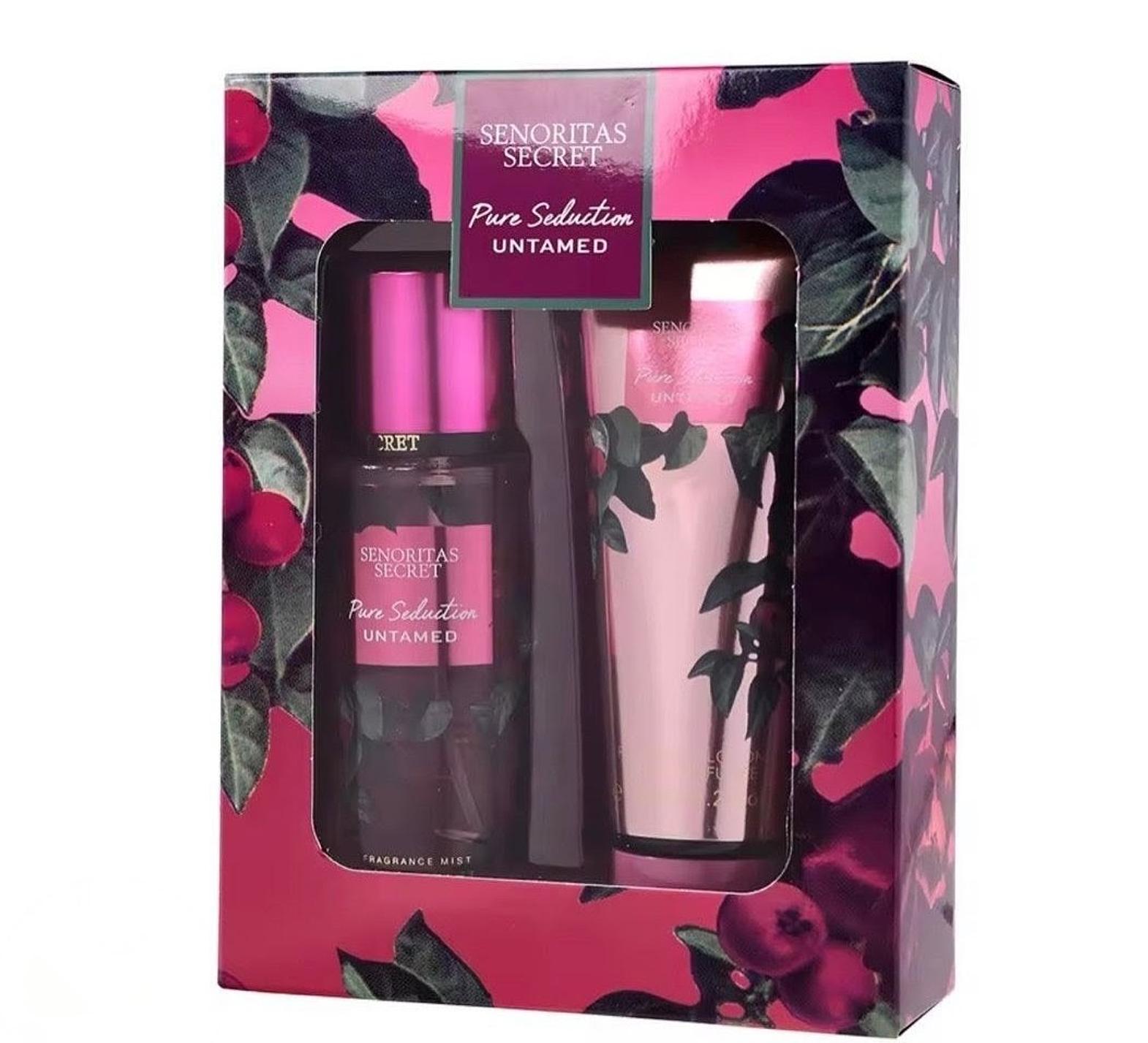 Senoritas Secret Pure Seduction Untamed Gift Set Box contains 125ml Perfume Body Mist 125ml Perfume Lotion. Comes in a beautiful box ready for gifting It's a sweet fruity fragrance with notes of berries and violet.