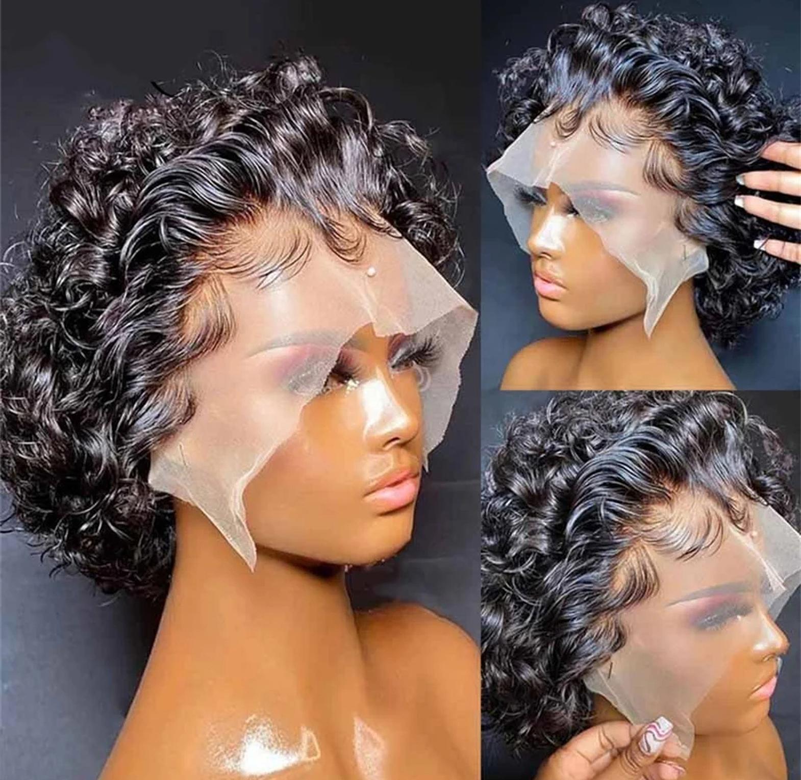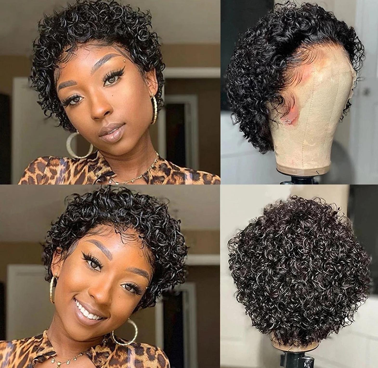 Unleash your inner diva with our black Pixie Wig, featuring a chic, short, and curly pixie cut. Crafted from 100% human hair with a 13*2 front lace for a natural look, this 6-inch black wig offers effortless style and captivating curls.
