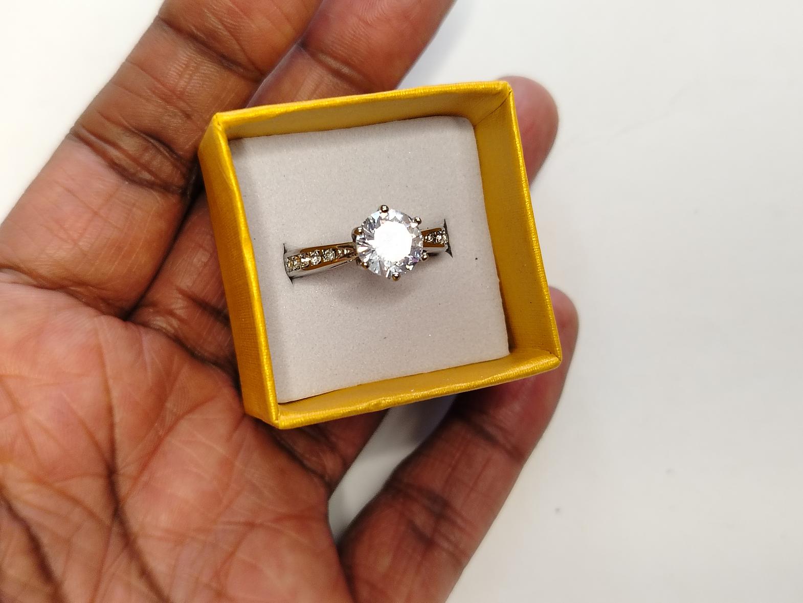 Immaculately crafted cubic zirconia stones set in polished Stainless steel to create a beautiful and durable engagement ring